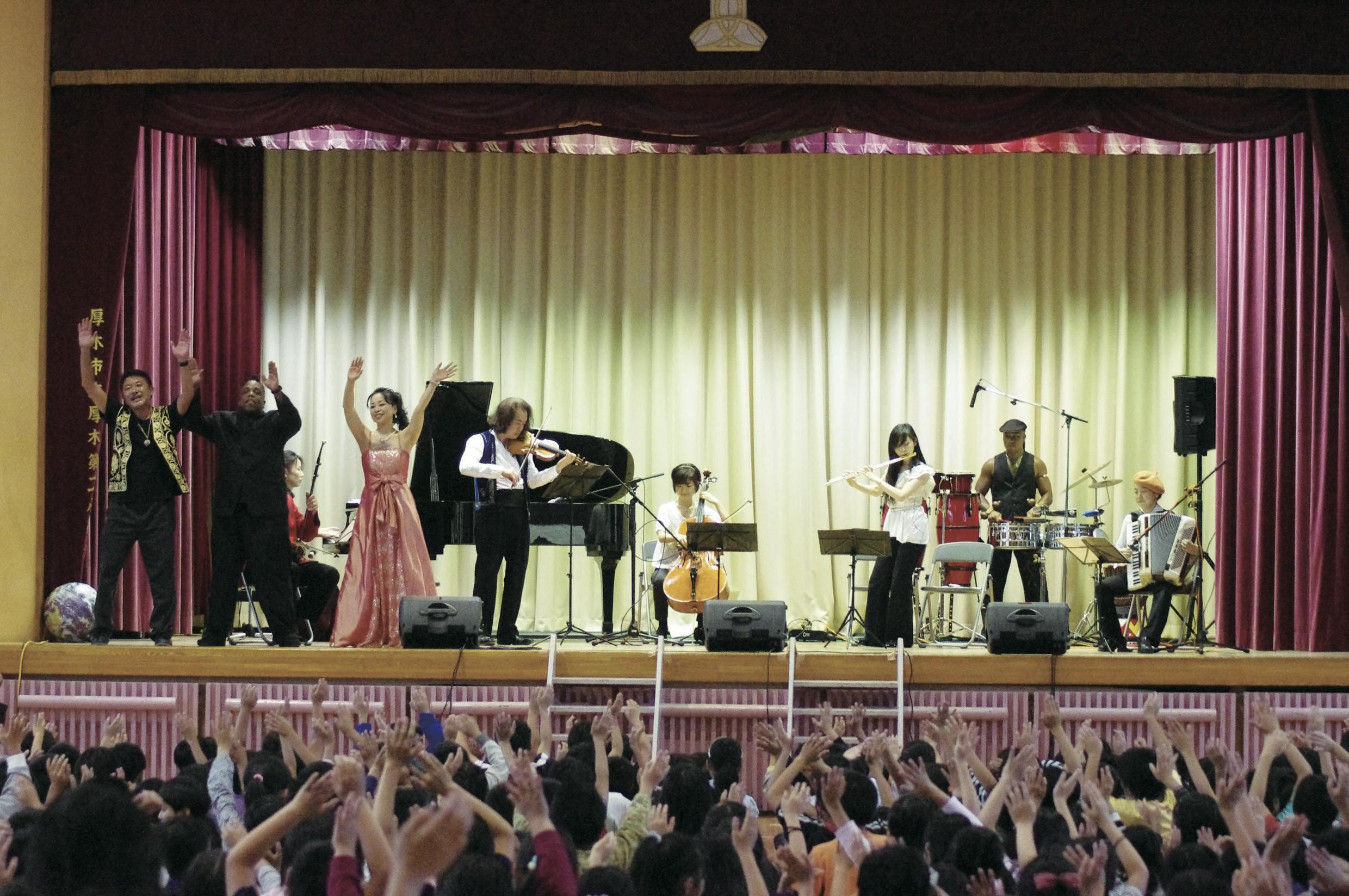 アフリカンミュージックにパーカッションアンサンブル、オーケストラ、ジャズ、中国雑技、ゴスペル、オペラ、リコーダー、そしてダンス、パントマイム、オーケストラ、落語、狂言、・・・各ジャンルを代表する本物のパフォーマーのみを集め、更なるアイデアを加えつつ、趣向を凝らし、日本の情操教育の発展の一翼を少しでも担えれば!との思いで年間300ステージ以上、学校という環境上、薄利ながら舞台創作に励んで参りました。