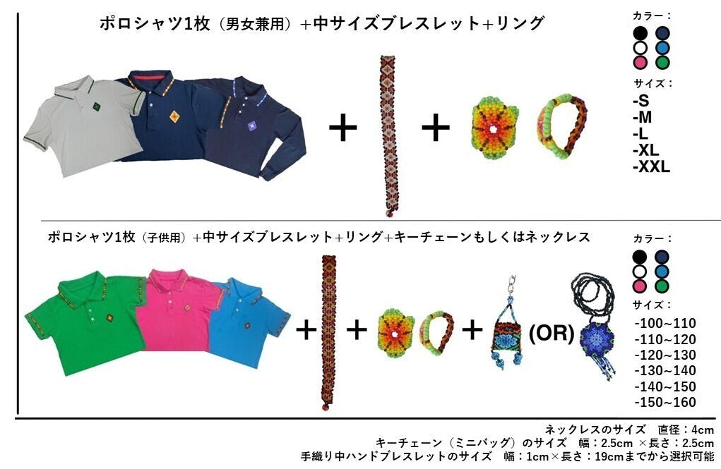 ウイチャル族が作成したポロシャツやアクセサリーにご支援いただけますと、ウイチャル族の職人およびその家族の生活が豊かになります。