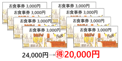 1号店、2号店の両方で使える、3000円のお食事券8枚+①