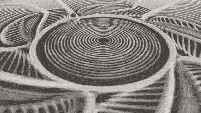 制御された球が砂の上に美しい模様を描き続けるのですが、