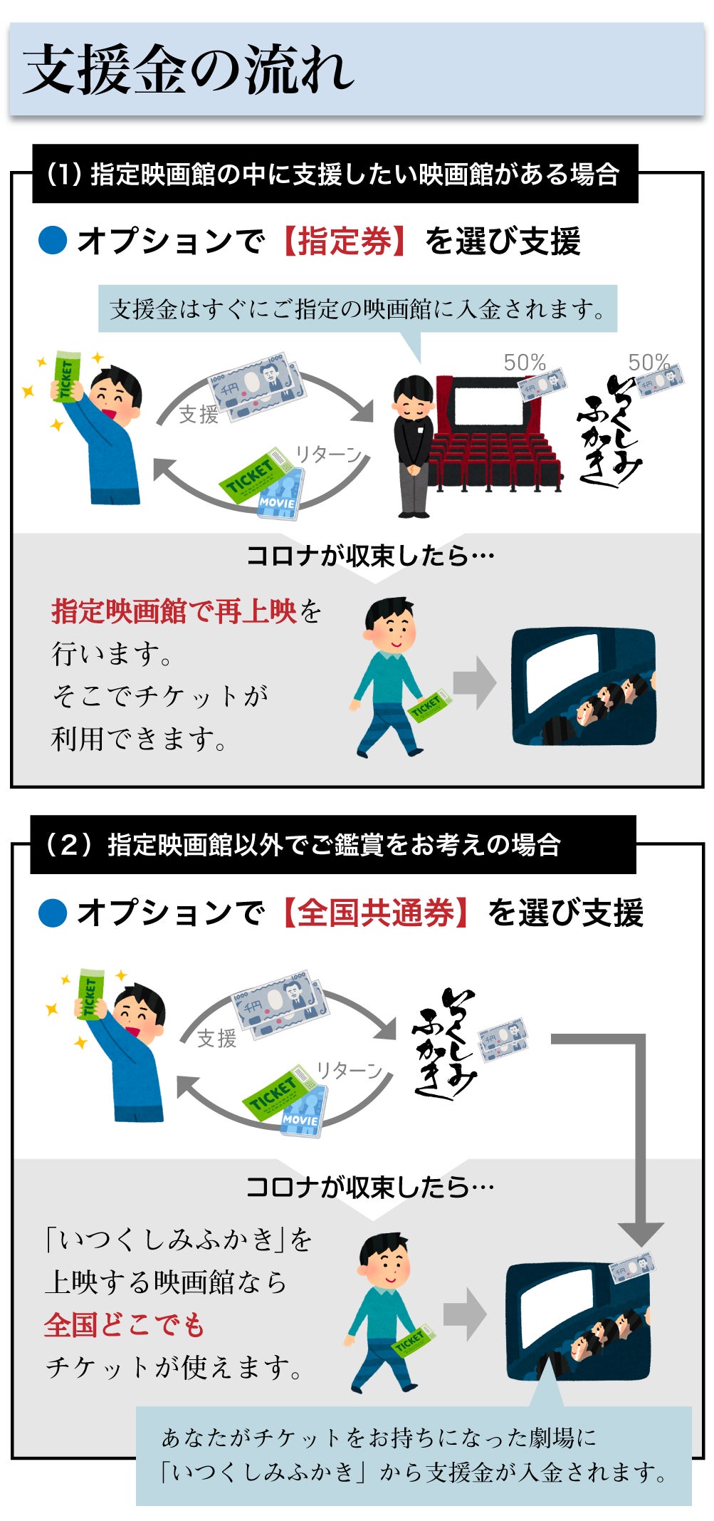 ※全国共通券とセットで売れたDVD分の支援金の半分は全て均等に指定映画館に振り分け致します。