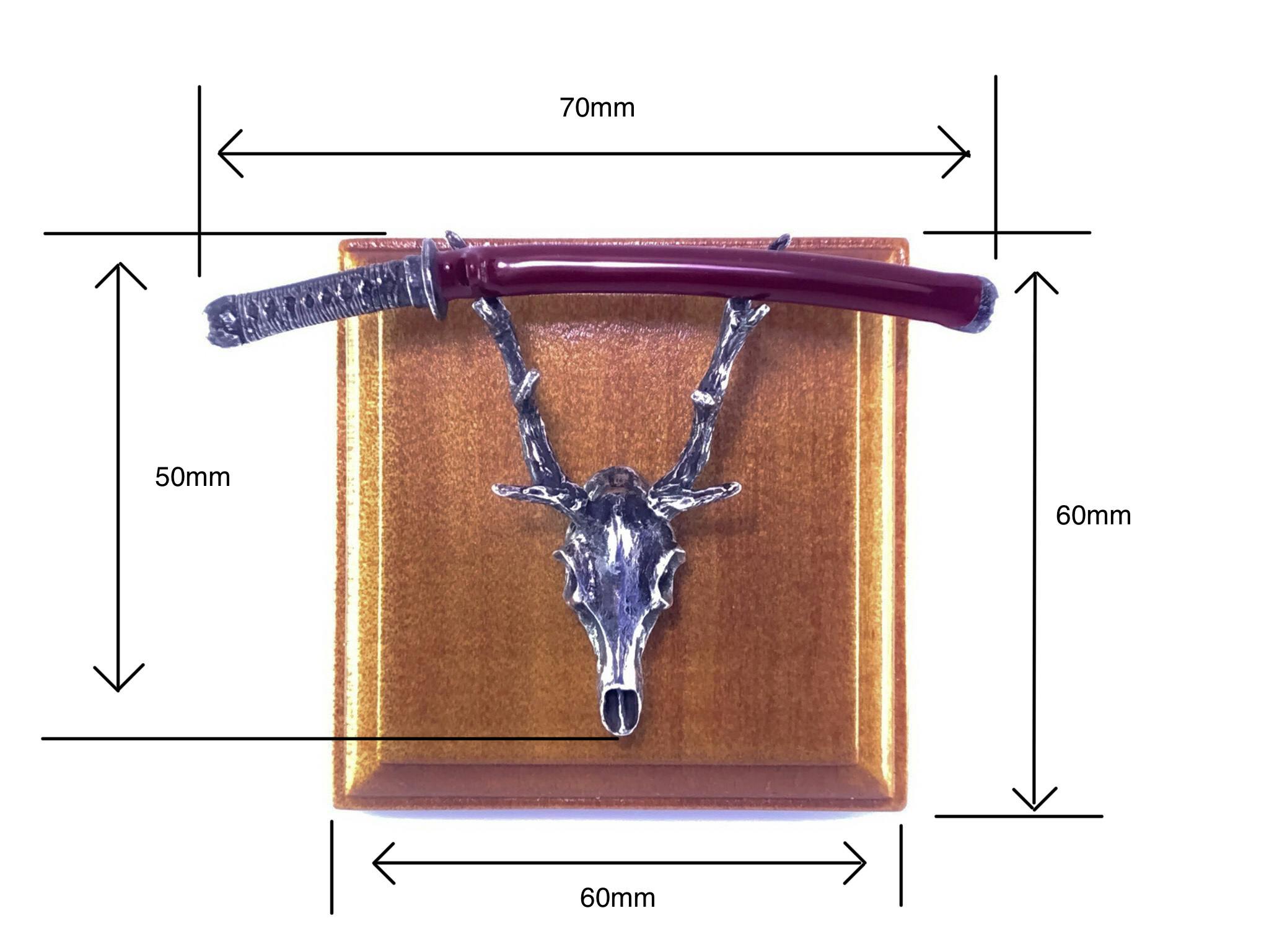 シルバー製の鹿のスカルが支えるのは日本刀。