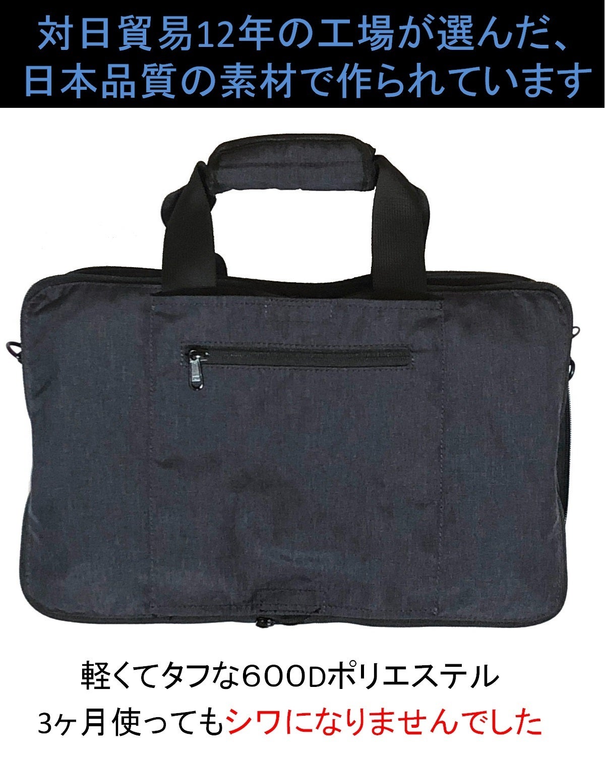 工場が選んだ生地で製造したバッグを3ヶ月使っても耐久性が大丈夫でシワがほぼないことを確認しております。