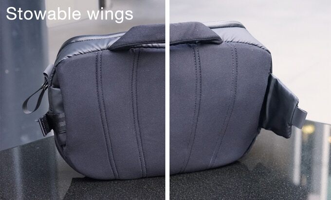 • ウイングを片方だけ使えばスリングバッグになり、両方使うとウエストバッグになります。