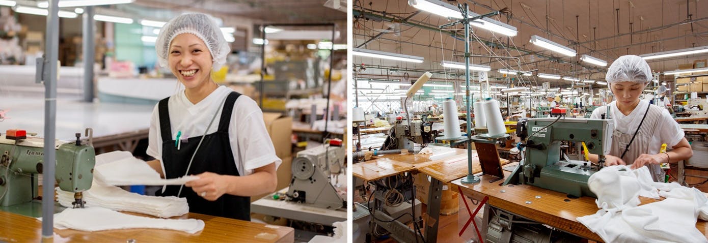 ベビー用肌着からシニア向け尿もれ下着まで幅広く手がける、国内屈指のメーカーのご協力により、試作と試着を重ねました。約2年の歳月をかけて、納得の1枚が完成。その確かな技術のもと、職人の手によって一枚一枚丁寧に作られています。