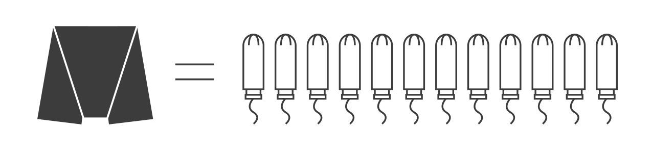 例えば、使い捨ての生理用ナプキンを1日5枚使用すると考えましょう。1度の生理期間(5日間として)で25枚、生涯で約12,000枚もの生理用ナプキンを使用することになります。
