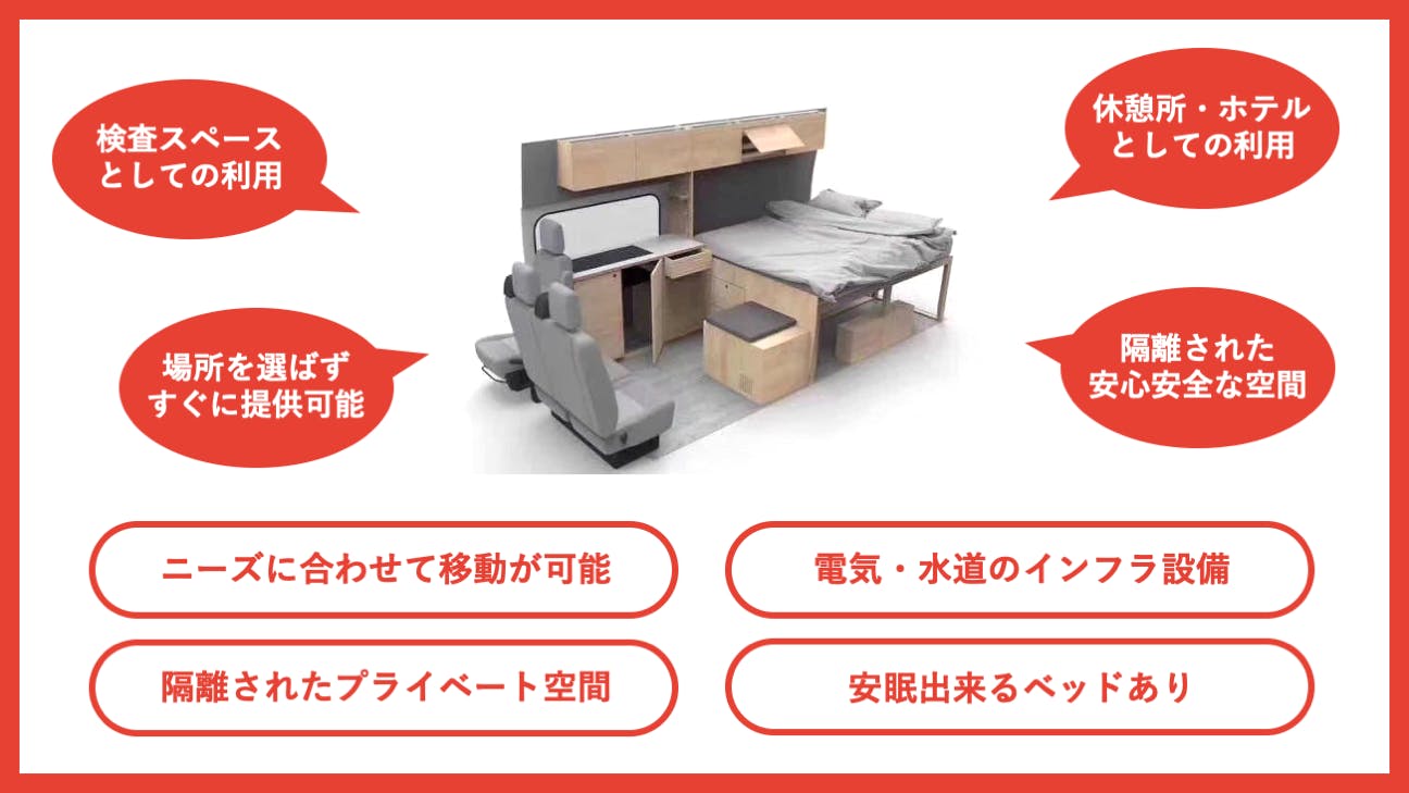 現在、既に複数のキャンピングカー事業者さまからの車両提供のお申し出、病院さまからの提供依頼を受けています。今後、まずは関東近郊から数十台、全国で100台以上の車両提供を目標としています。
