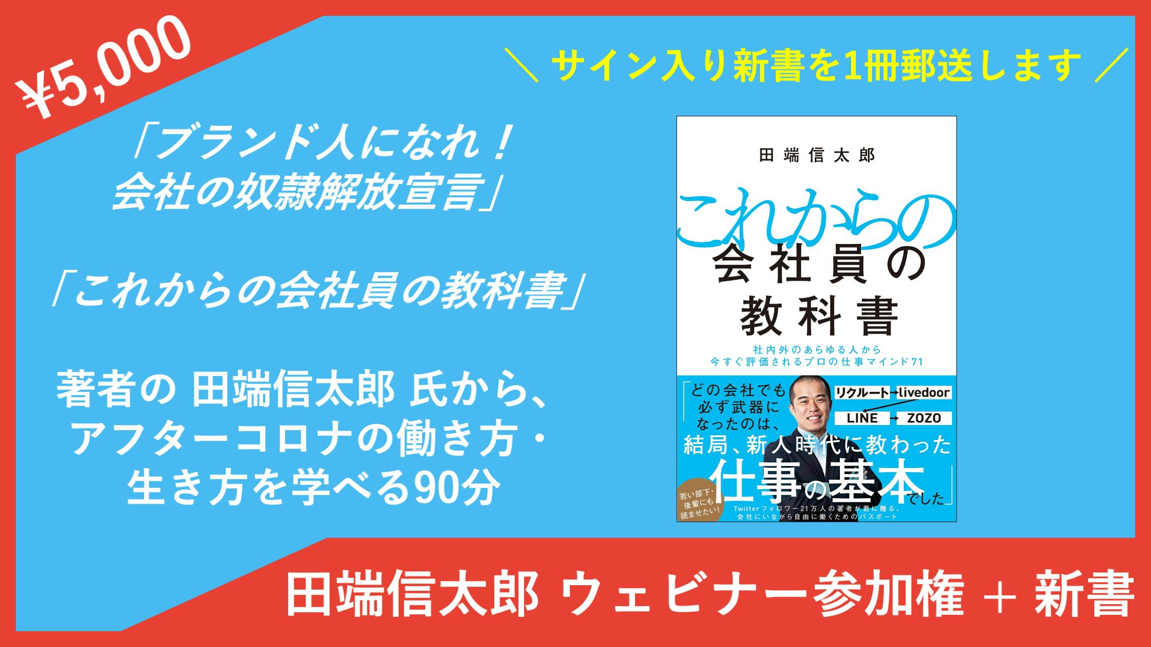 【追加リターン 12】田端信太郎氏 特別講演会「これからの会社員の教科書」ウェビナー参加権 + サイン入り新著付き(¥5,000)