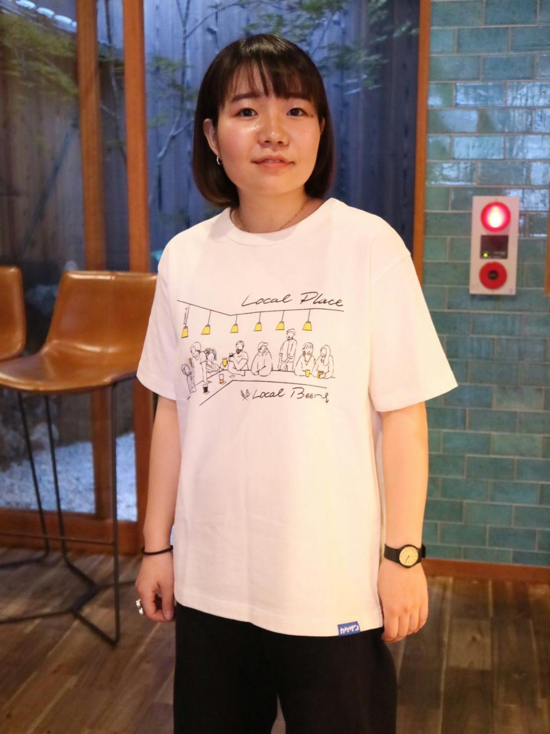 Tシャツは生地、形から日本の工場へお願いし、イラストデザインはTAKUMIYA、高野麦酒店 TAKANOYA、CrafthouseKyotoの魅力、ビールを中心にカウンターに集う楽しい時間をイメージしました。