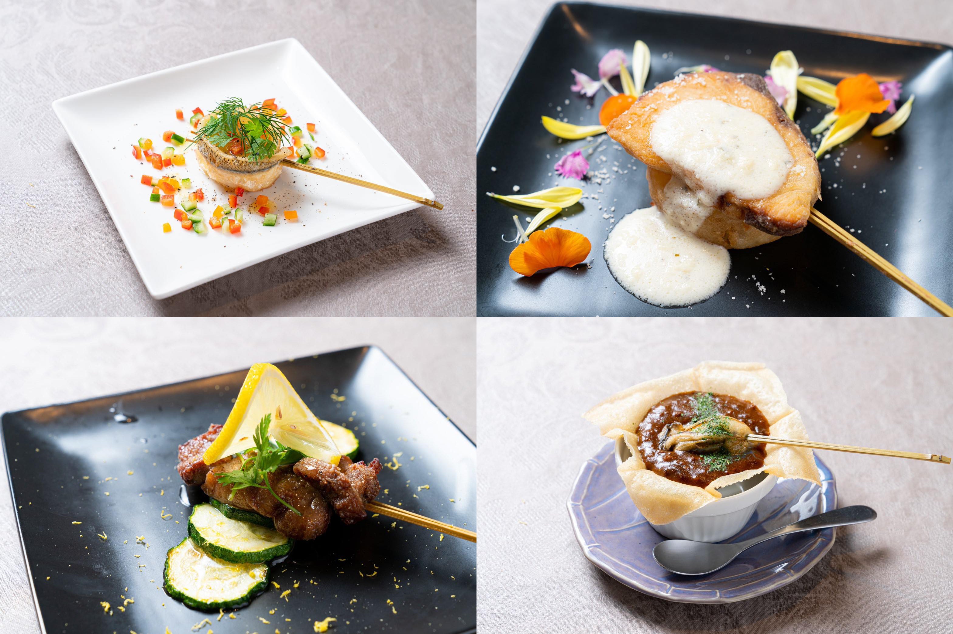 従来のアヒージョを具材ごとに串に刺してオリーブオイルと分子調理器で「アヒージョ」し、様々なソースと合わせた新しいスタイルの料理です。全てがメインディッシュとなる料理と落ち着いた半個室の店内で様々なシーンにご利用いただけます。
