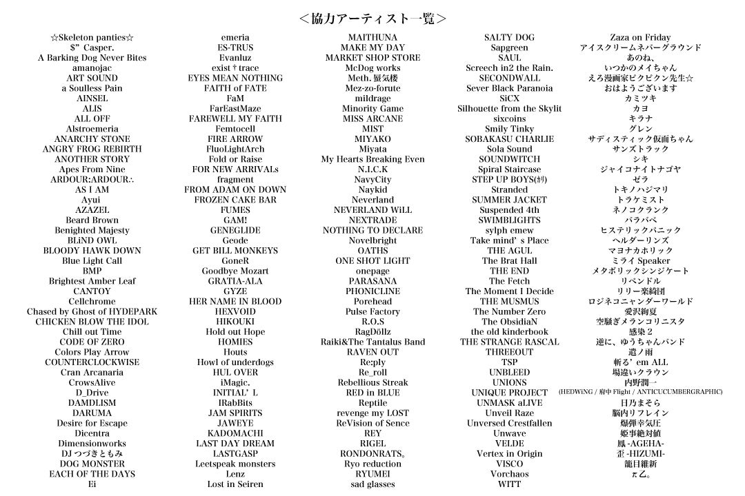 ※協力要請の声掛けきれないていないアーティストもいますので申し訳ないです。。