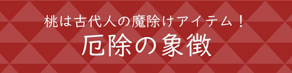 古事記には黄泉の国から逃げるイザナギノミコトが数々のものを追手の鬼に投げつける中で、唯一桃の実を投げることで鬼を退散させたとあります。
