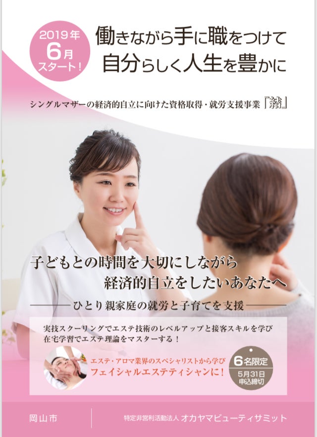 2019年7月開講~2020年3月に8名のシングルマザーの方がフェイシャル技術・ボディ技術を修了し、現在就労サポート中です。