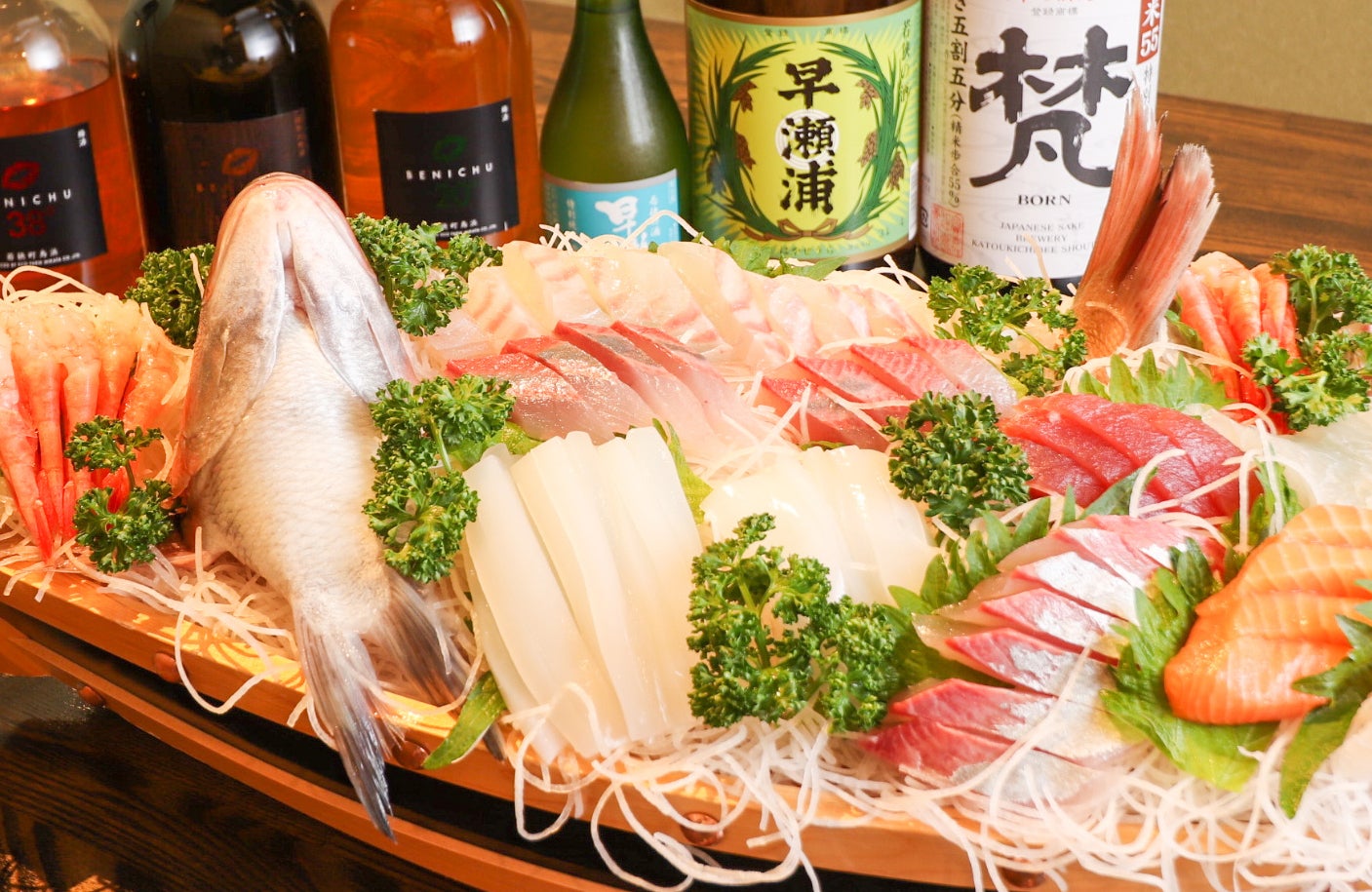 女将自らが早朝市場に行き、自分で競った魚をさばいて器に盛りつける。甘くて弾力のあるぴちぴちとれとれの魚は、魚嫌いのこどもも食べられるようにしてしまう美味しさ。
