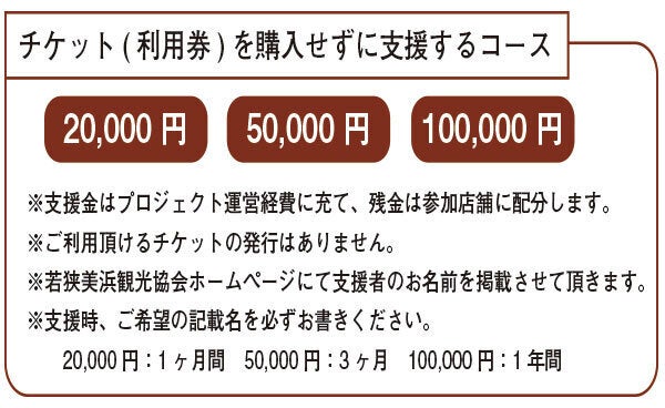 2.支援金額に応じて、ご希望のお名前を一定期間、若狭美浜観光協会ホームページに掲載します。