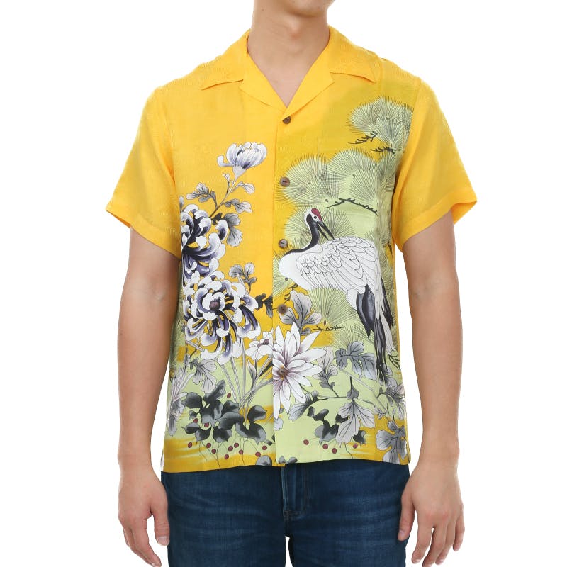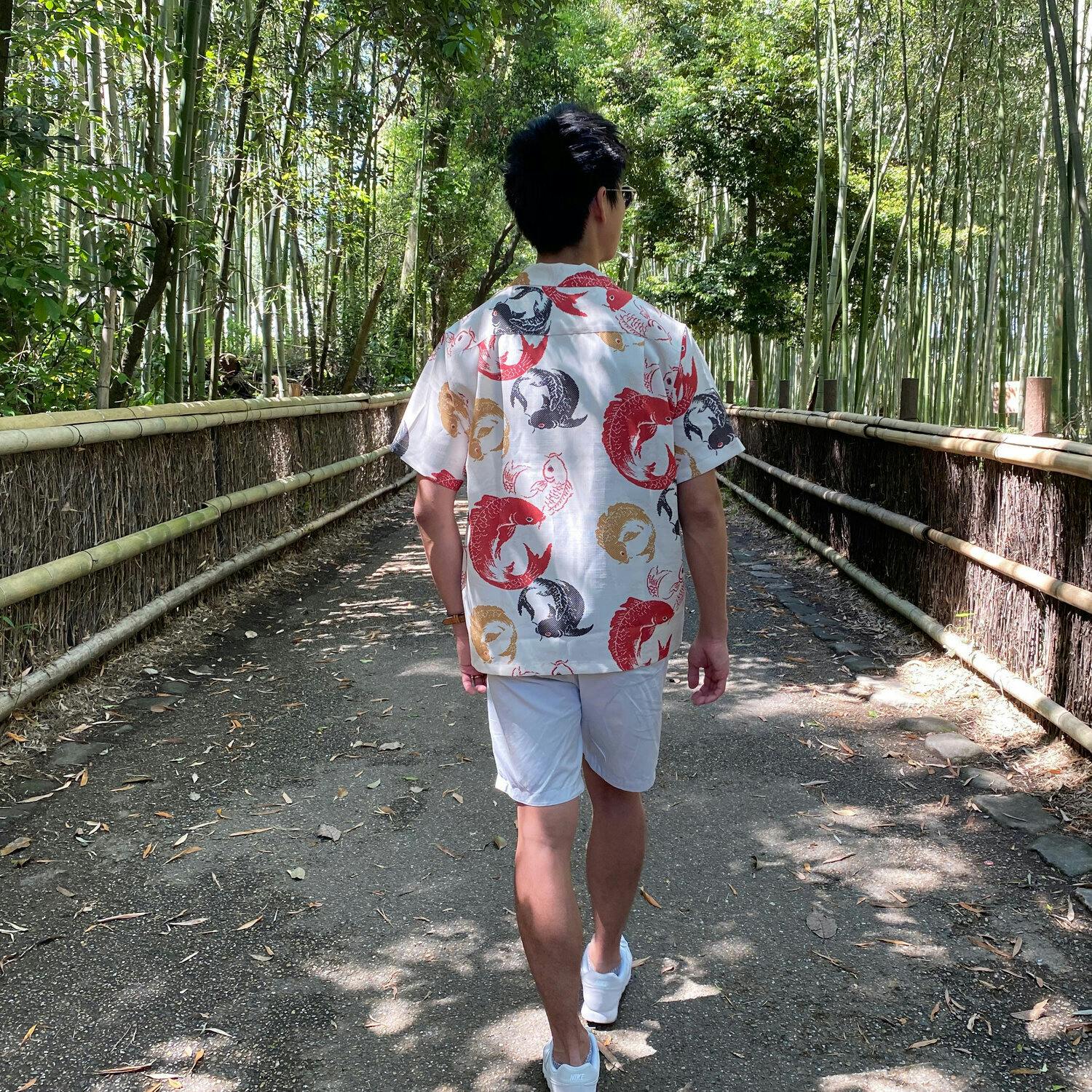 京友禅で染められた鮮やかなアロハシャツは、着た人の気持ちを明るくさせてくれる、コロナで暗くなった世の中を明るくすることができると信じています。