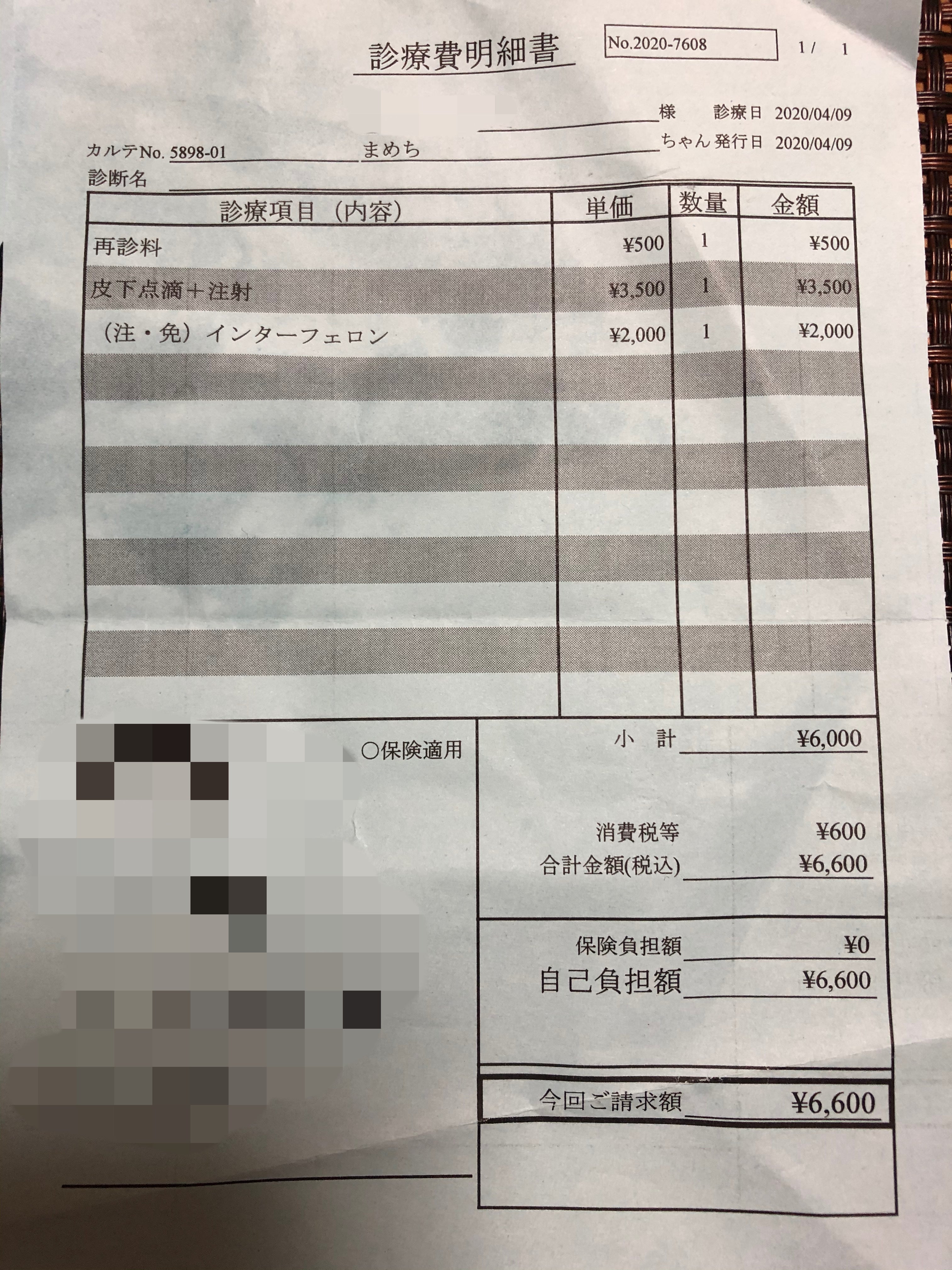 この日は検査の他に点滴と注射、そしてお薬を処方して頂きました。