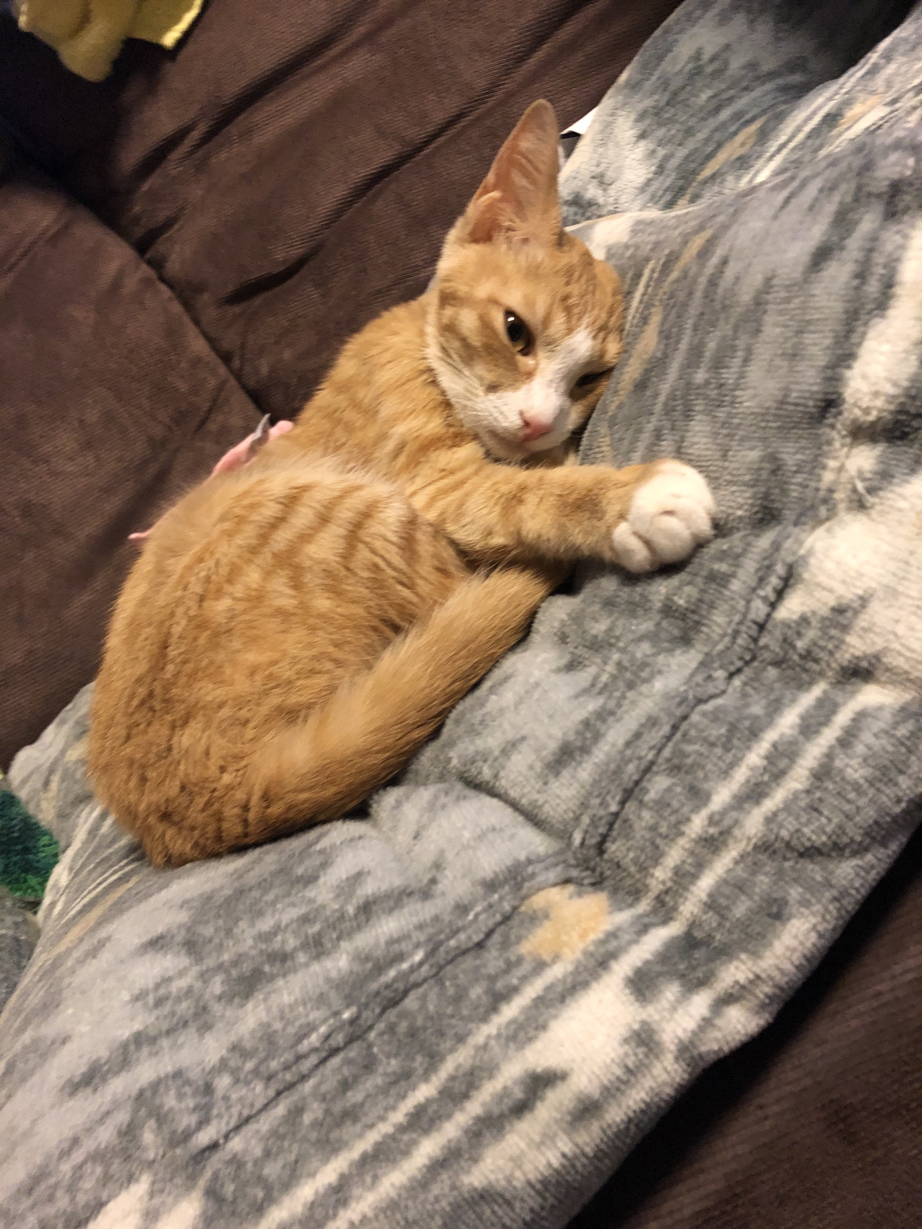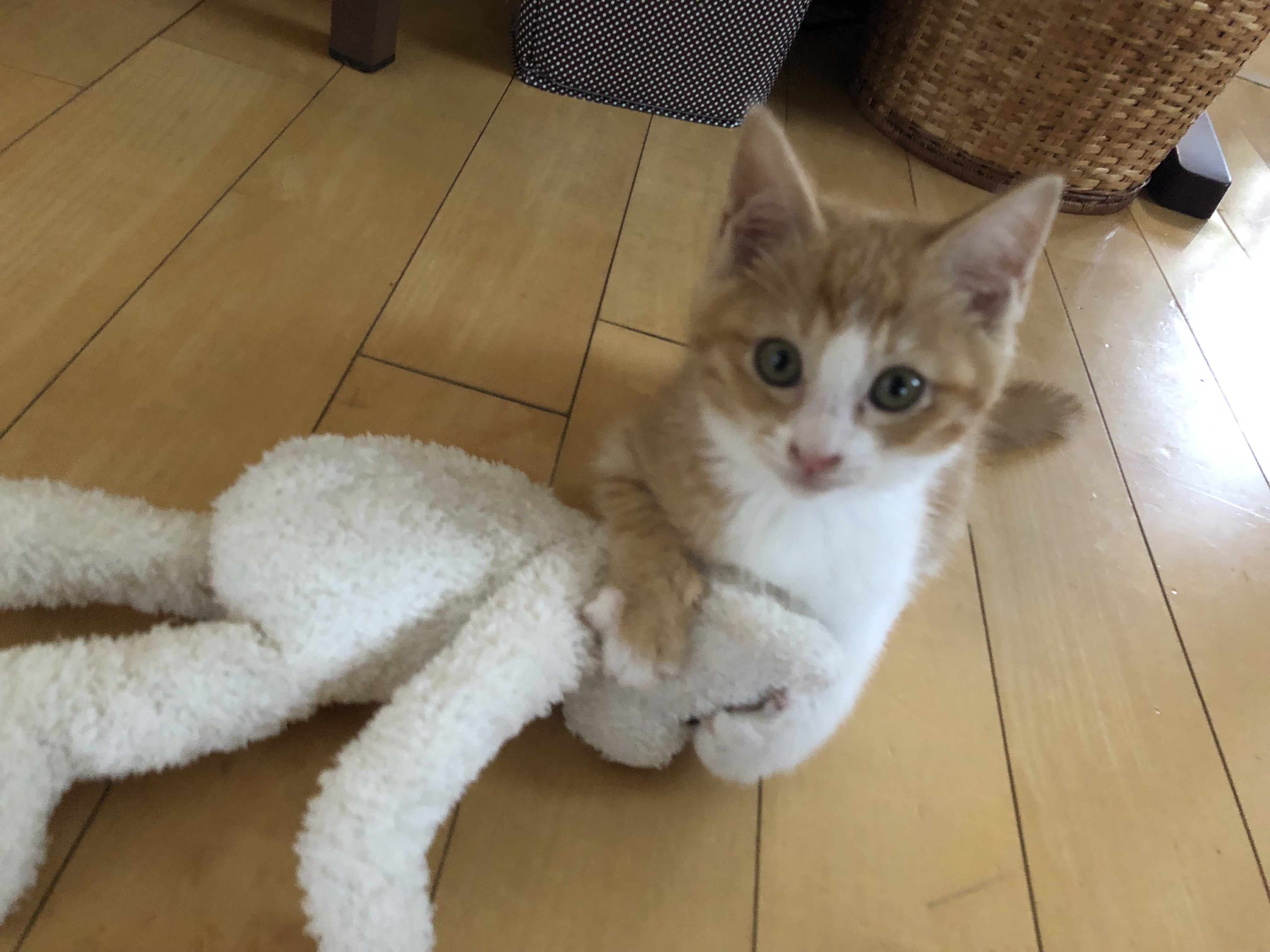 2021/01/27 19:58お久しぶりです。七瀬です。遅ればせながら、あけましておめでとうございます。FIP寛解から半年が経ちました。食欲は以前とは比べ物にならないほど増しており、体重は5.5kgを超えました…笑私は大学受験が無事に終わり、まめちと触れ合う時間が増えてとても嬉しいです。最近のまめちは1日中「遊んで遊んで!」という調子で、1日に10回ほど私の部屋へ呼びに来ます、、笑画像は、おもちゃを持ちながら寝てしまった私を見つめるまめちです笑起きたらものすごい形相でこっちを見ていたので驚きました…ちょっと分かりづらいかもしれませんが…(上:2020.04.07 下:2021.01.06)こんなに大きくなりました。追記1/27最近まめちが吐いてしまうことが多く、また数日前から鼻に黒いできものが出来たので、本日病院に連れて行きました。結果は、鼻の出来物は真菌ではないかということで、培養検査をして軟膏を処方して頂きました。また、嘔吐の方は大腸炎かもしれないということで、大腸ケアのフードとお薬を頂きました。検査結果は早くて来週の水曜日、遅くて2週間後になるそうです。また診察の際に「心雑音が気になる」と再び言われたので、来週の水曜日に腹部エコー・レントゲン検査をすることになりました。鼻の右端と真ん中に見えるシミが日に日に大きくなっていきました。病院で取ってもらったので、赤くなっています。 もっと見る