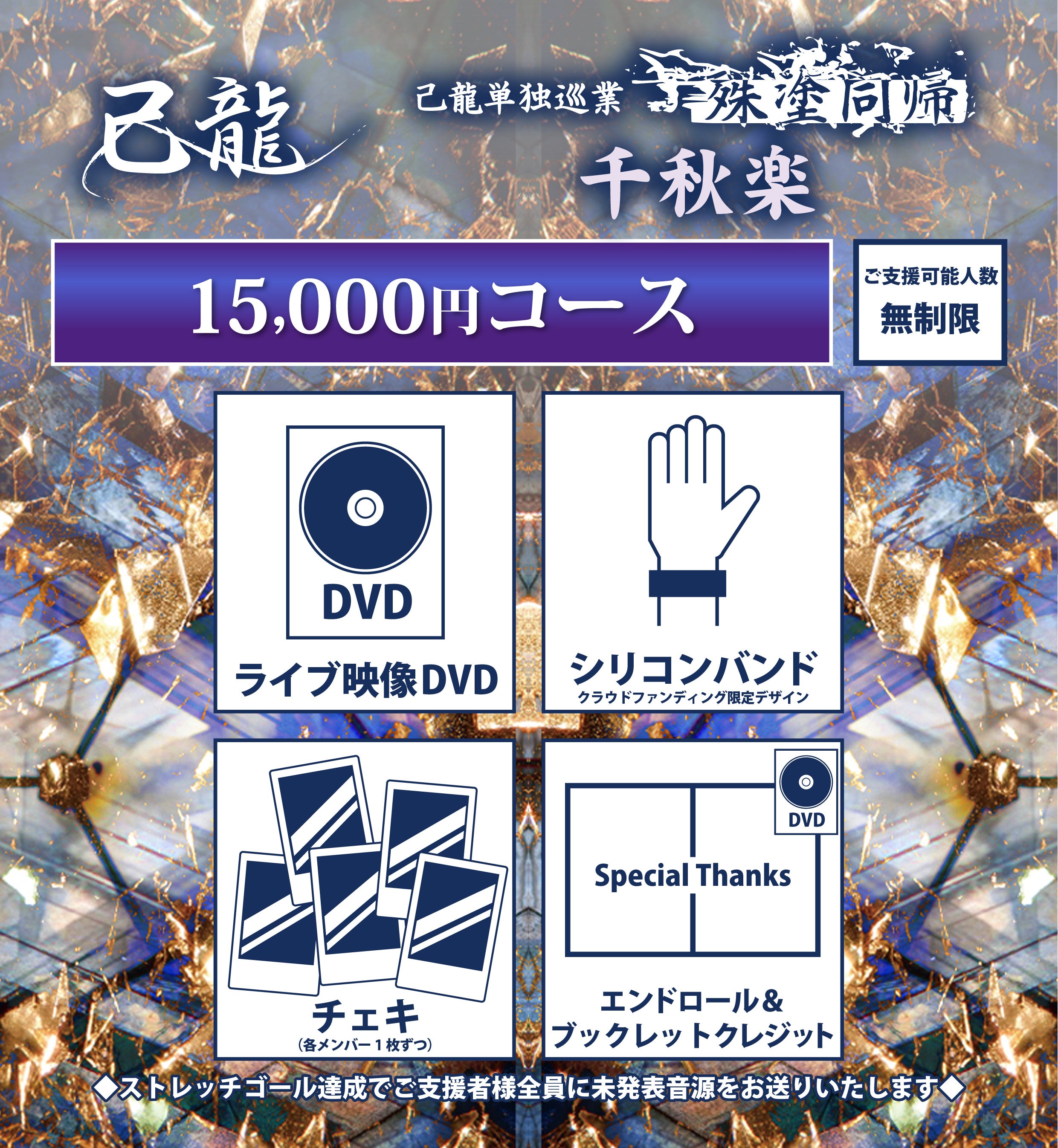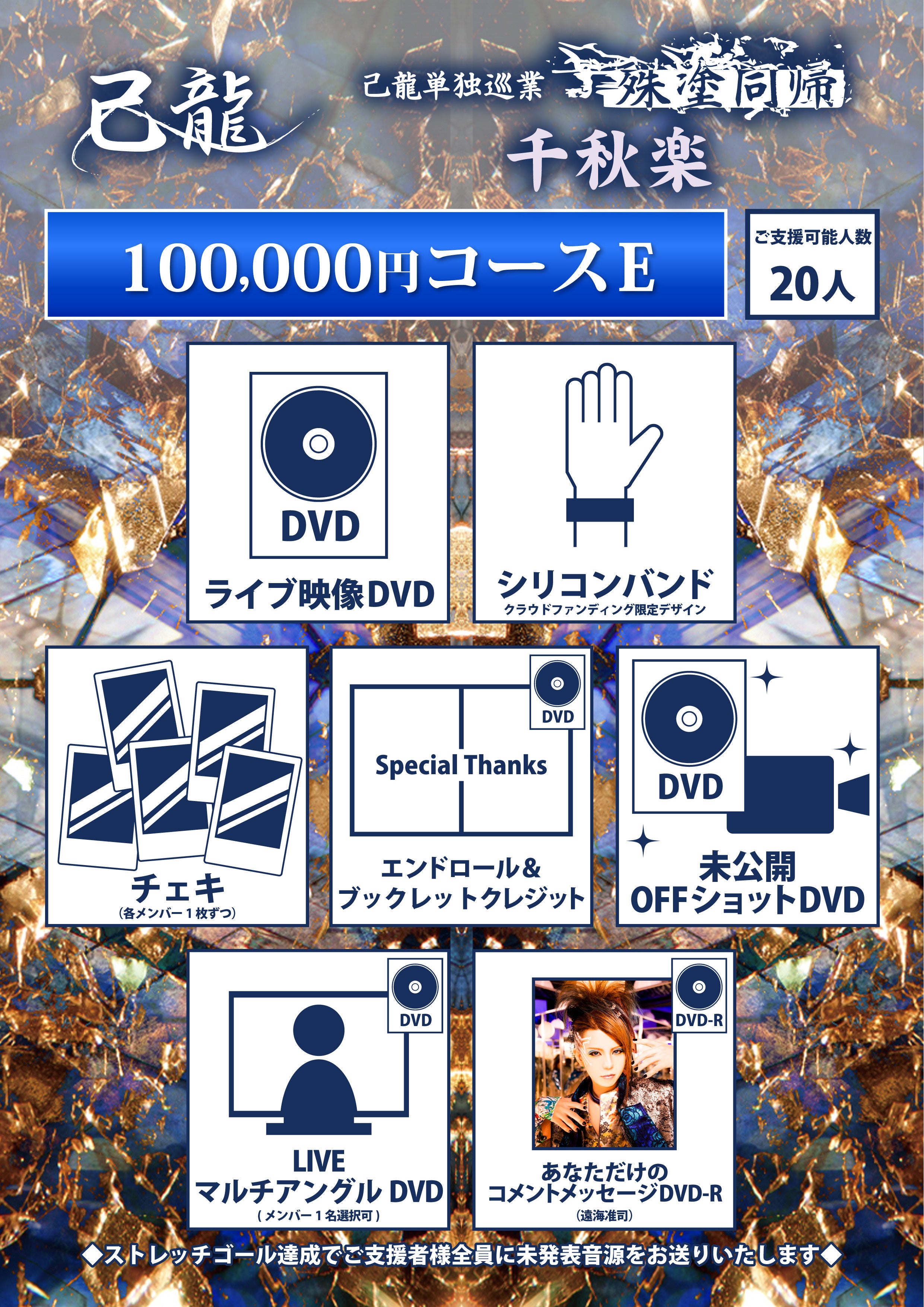 己龍単独巡業「殊塗同帰」千秋楽の無観客ライブ開催費用、そして、この日の公演を、LIVE DVDに収録して残します!尚、このプロジェクトにて制作されたDVDの一般発売の予定はありません。