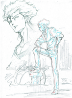 ※小美野氏によるキャラクターを構想するにあたってのラフ、これらのキャラが何にあたるのか?それともイメージ構築のためにだけ出てきたキャラか?これらの続報は、今後に。