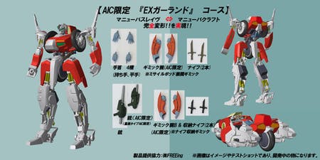 「AIC限定 EXガーランド」(限定アイテム用新規追加金型パーツ、リターンには記載されていませんが、メガゾーン23Ⅺ劇中デザイン頭部パーツも付属します。)