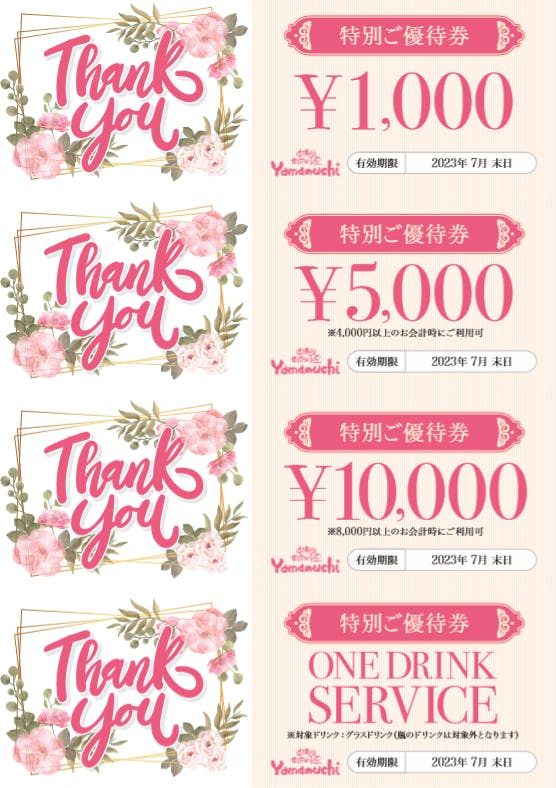 ➡ 12,000円分のお食事券 + ワンドリンク券 × 1枚