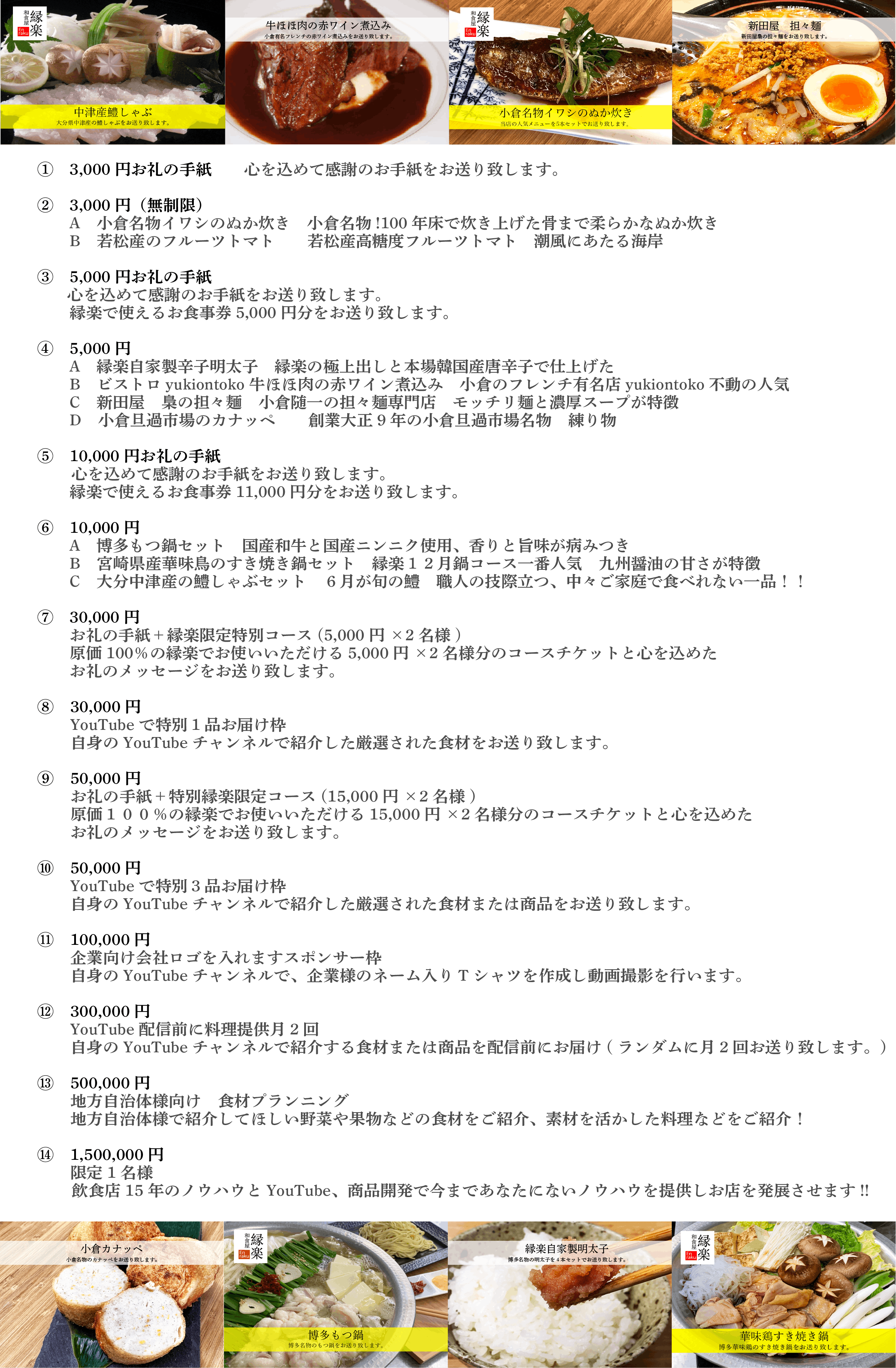 【厳選リターンのご紹介:北九州の有名店のご協力!!】