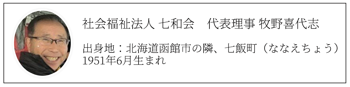 私は社会福祉法⼈七和会で理事⻑をしております牧野喜代志と申します。