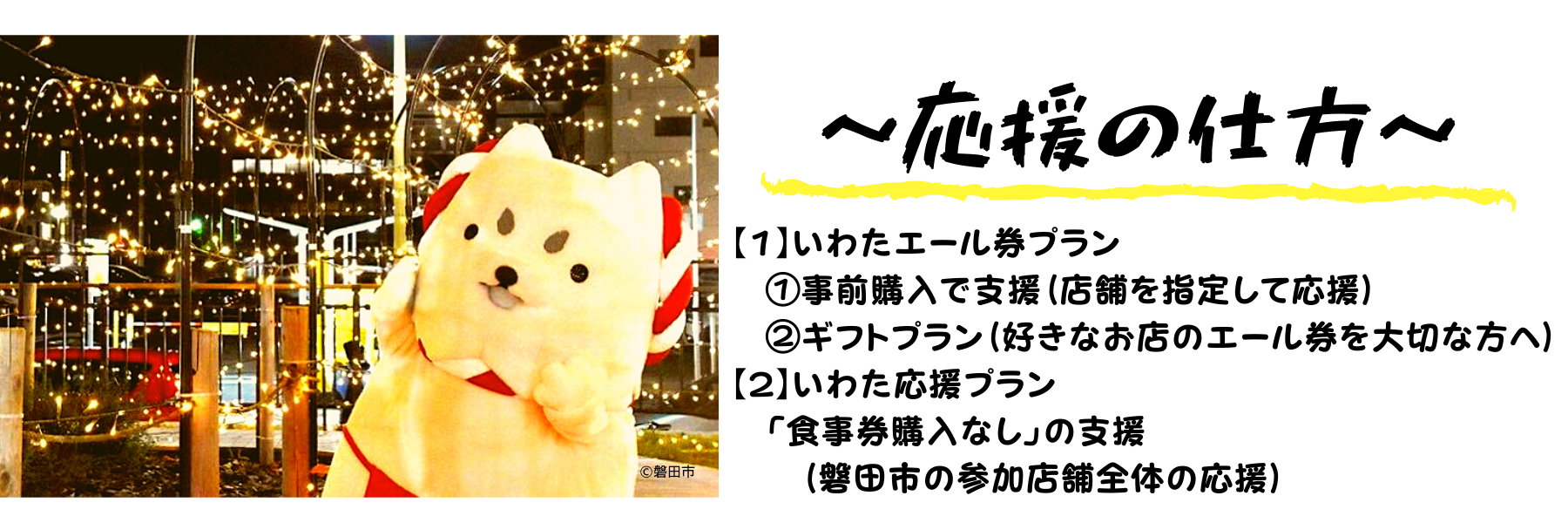 ※エール券リターンについては、上記クラウドファンディングいわたエール券参加店舗の中から店舗を指定してください。上記以外の店舗の指定は、エール券の発行が出来ません。ご了承ください。