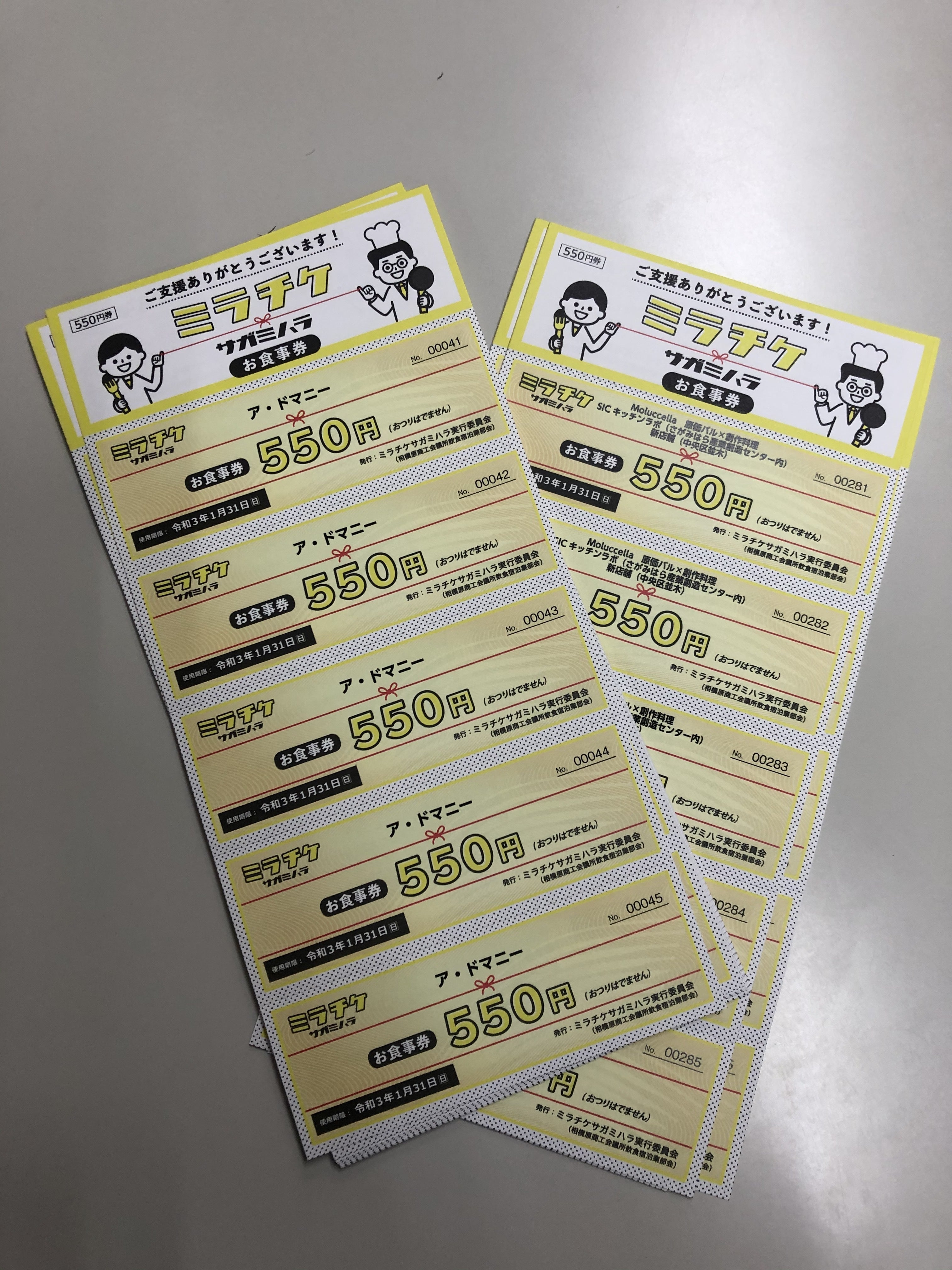 ミラチケサガミハラお食事券発送しました!