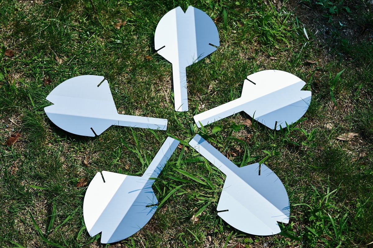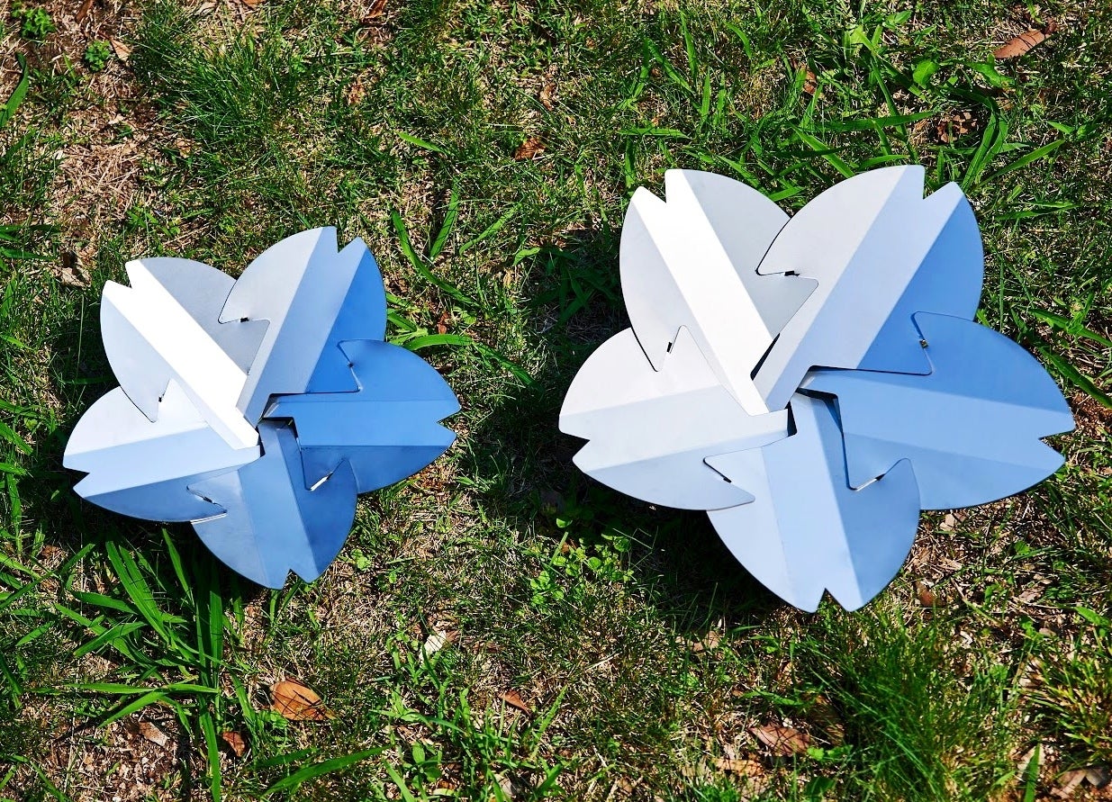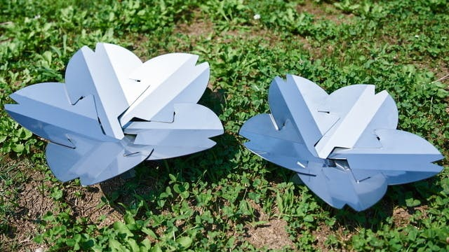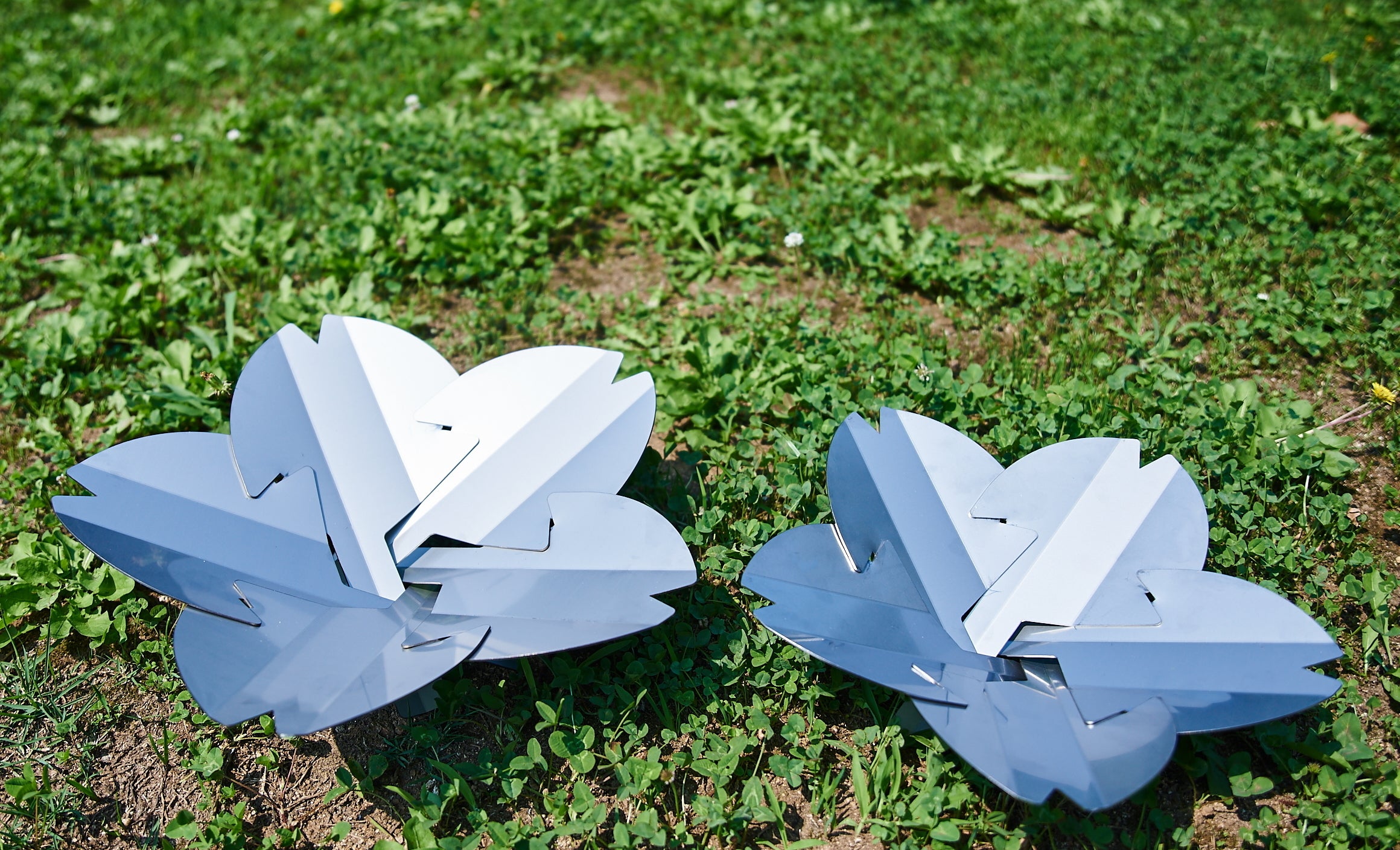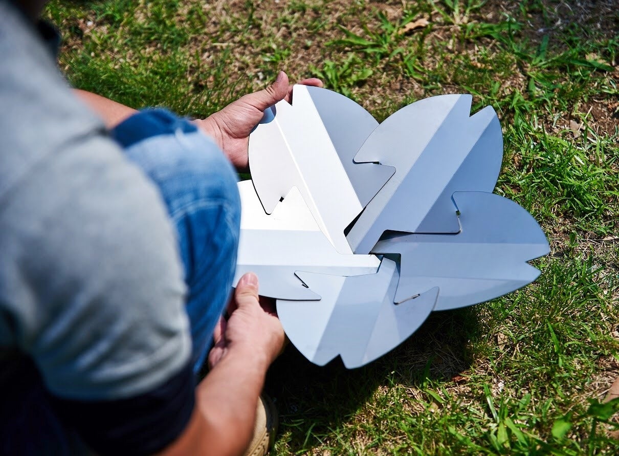 それぞれまったく同じ形状の花弁プレートを5枚組み合わせることで、桜型の焚き火台が完成します。