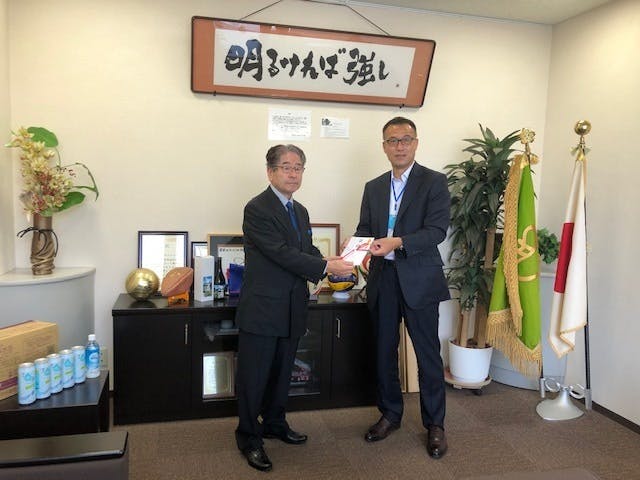 2020/06/10 17:01東京ガスエコモ株式会社の紹介で賛同して頂いた東京ガス株式会社より寄付金を頂きました山本 修(オサム) 東京ガスエコモ専務取締役と八亀 忠勝 横浜市食品衛生協会会長 もっと見る