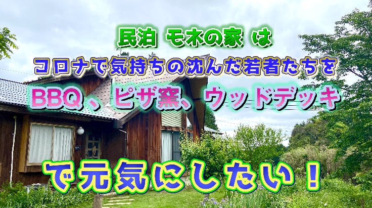 モネの家は女子会、同期会や同窓会などMax13人まで泊れる人気の民泊施設です。ロッジ風な建物、広いリビングと暖炉、鳥の声、星空、それらが宿泊者に愛されてきました。この夏に向けて《 ウッドデッキ/本格ピザ窯 /常設のBBQグリル/葡萄棚》を作る計画をしておりました。