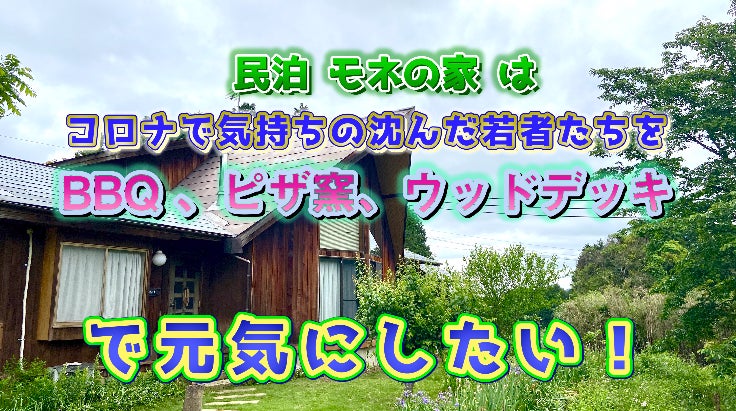 モネの家は、宿泊のお客様が都会の喧騒から離れ、朝日や夕日、星空を見上げ、モネの家の畑で収穫した野菜を使ってBBQを楽しんだり、ピザ窯でピザやパンを焼いて食べる、ストーブ用の巻き割り体験するなど心が喜ぶ豊かな暮らしを体感してもらうことでコロナで落ち込んだ気持ちを少しでも早く回復させ元気になってもらいたいと願っています。