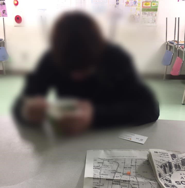私たちが彼に出会ったのは、道端で歩き疲れててしゃがみ込んでいるところでした。出会った当初は「僕はもういいです、僕が悪いんです」と泣きじゃくりながら私たちの支援を拒んでいましたが、しばらくお話しをつづけてようやく屋内に移動してくれ、カップ麺を口にしてくれました(ボカシを入れることを条件に、ネットでの掲載を許可していただいています)。