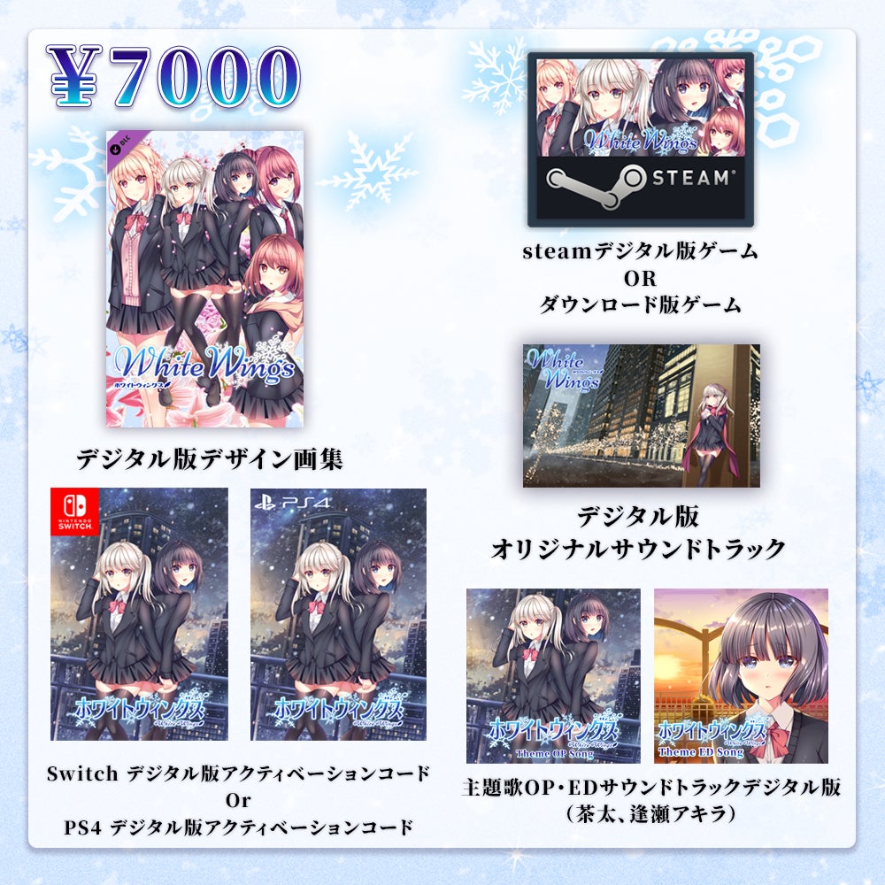 弊社pureworksは現在『ホワイトウィングス』の開発に努力しております!これは我々がまもなく世に送り出す新しいビジュアルノベルゲームです。我々はゲームのパフォーマンス上で、皆様に他にはないリアリティーを味わって頂きたいと願っております。このゲームの主題はねじれた三角関係の恋愛の中でのキャラクターの感情の変化、及び人間性のねじ曲がりと善悪を表現することにあります。