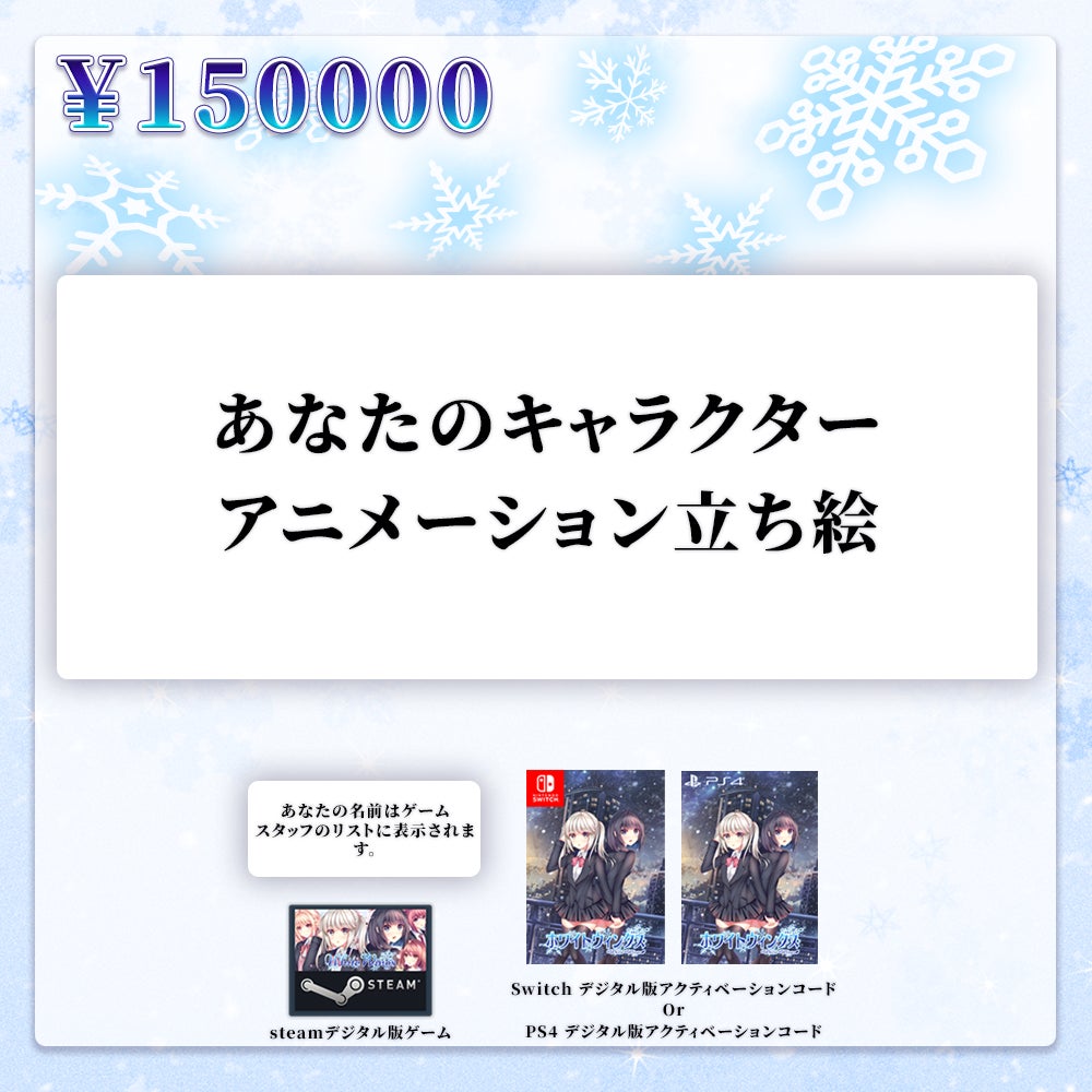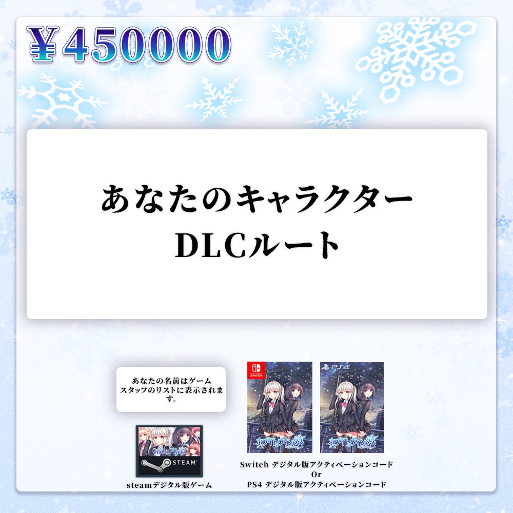 「Switch Or PS4 デジタル版アクティベーションコード」はプロジェクトが600万円目標額を達成した場合にのみ付属します。