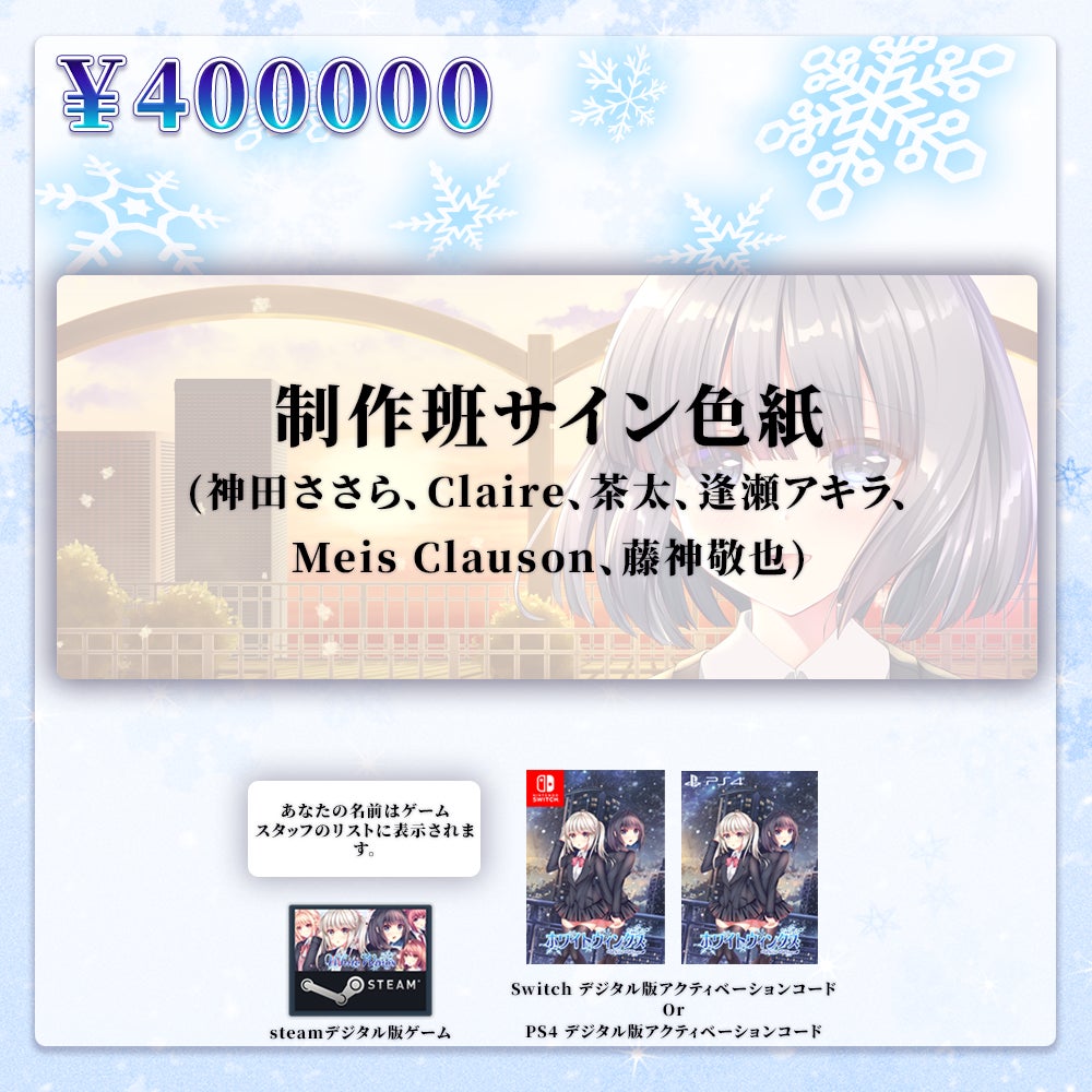 A:できません。もしプロジェクトが600万円目標額に達しなかった場合、Switch/PS4のデジタル版アクティベーションコードを取得することはできません。