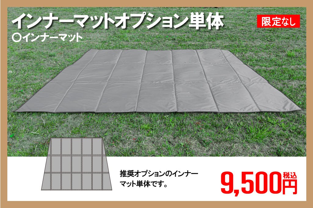 オプションで用意されたお座敷シートは寝室よりも広いリビングスペースをそのまま土間/洋間→座敷として和室のように使うことができます。その格別に広いお座敷には、厚手のレジャーシートやカーペット、ゴザなどを自由に持ち込んでのロースタイルやごろ寝など、思いのままのスタイルで楽しめます。また、インナーテントを外してしまって、お座敷を広い雑魚寝スペースにし、逆にインナーテント側スペースを土間やキッチンのようにしてしまうというエポックメイキングな使用法も可能です。