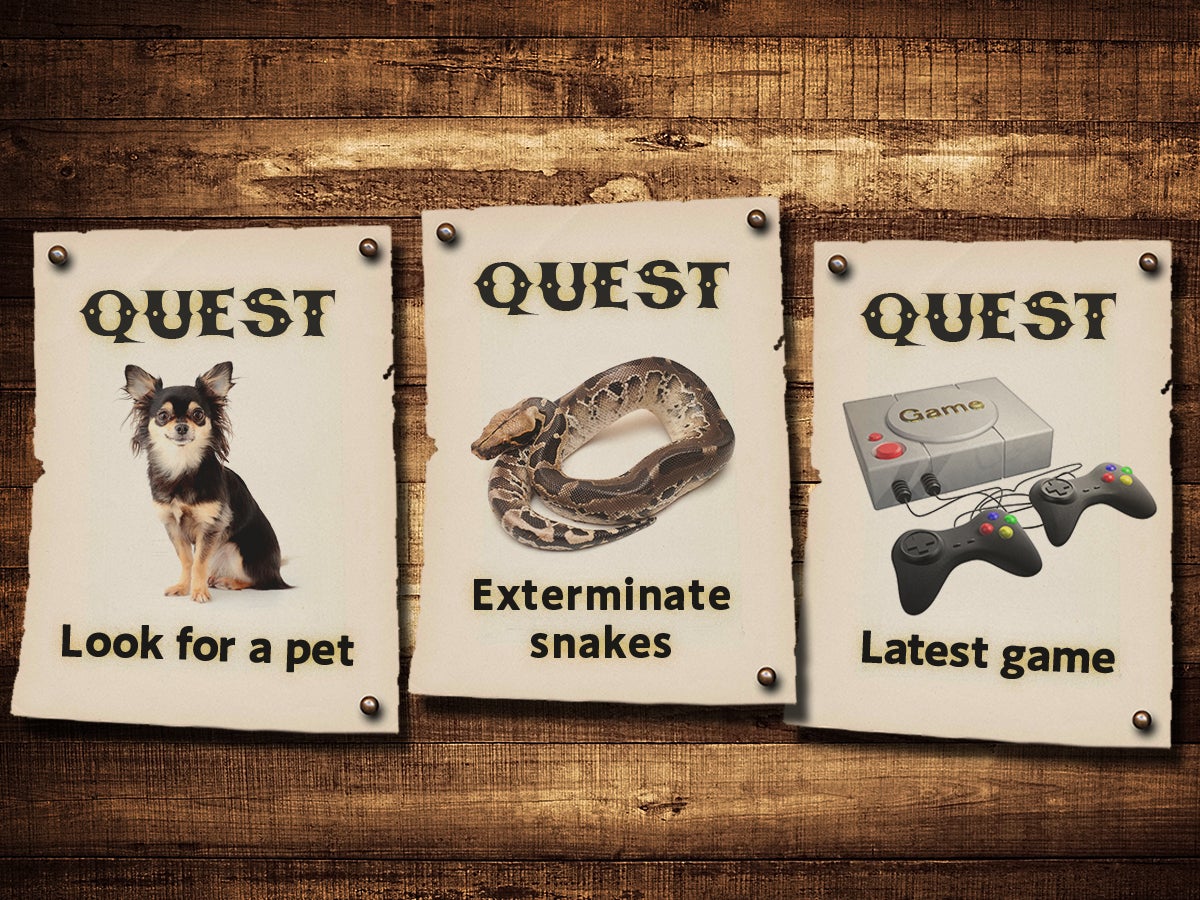 究極の財宝を手に入れるには強くならなければなりません。財宝は様々なクエストという課題をクリアしていかなくては手に入らないからです。まだ新しい世界を知らないあなたは町に溢れる様々なクエストを選び、クリアしていくしかありません。それらのクエストはどれも初めてすることばかりです。