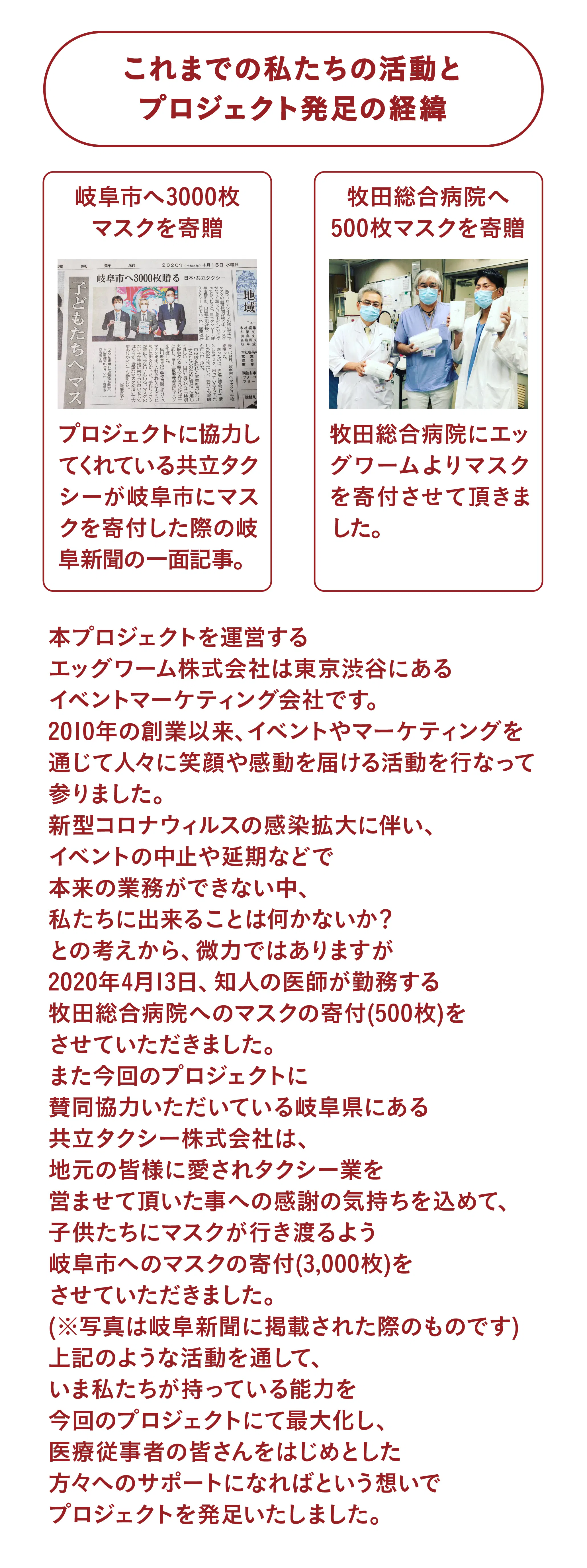 This project has been created by Eggworm K.K., an events marketing agency located in Shibuya. With the current pandemic, many of our planned events have been postponed/cancelled, and we want to use this time to give back and support the frontline workers and help other businesses stay afloat.