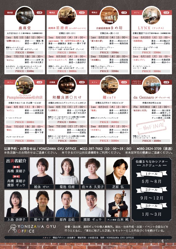 初めまして。私達は、仙台で演劇や朗読の企画を行っている、YONEZAWA GYU OFFICEという事務所です。