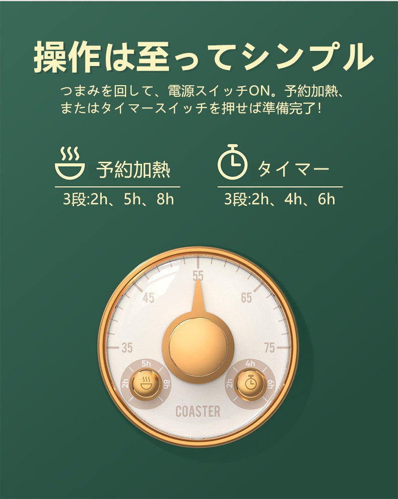就寝前に予約しておけば、寝起きに設定した温度の暖かい飲み物が飲めて最高です!