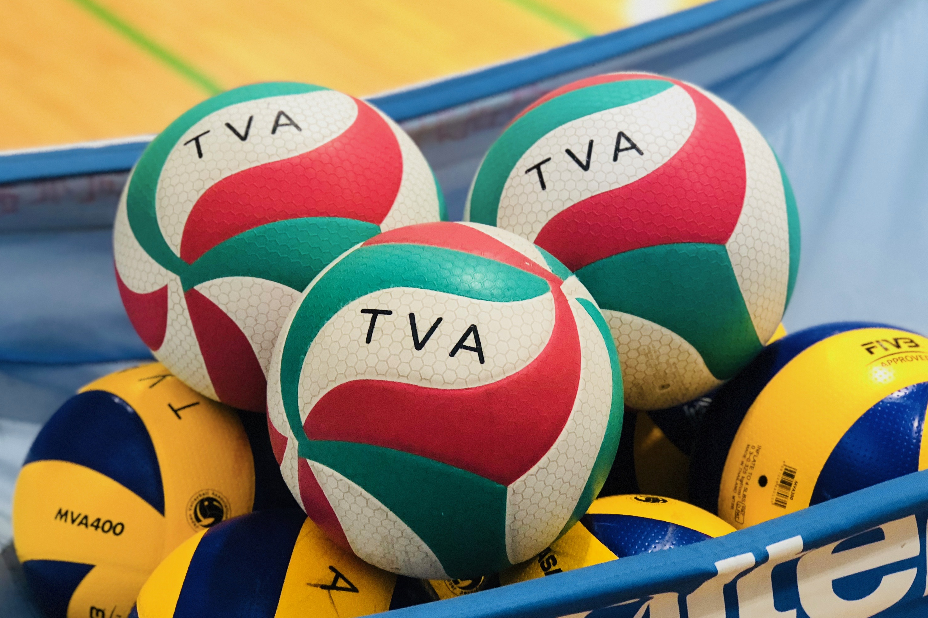 TVAのロゴが入ったバレーボール専用のピステをお届けします。練習に最適です。