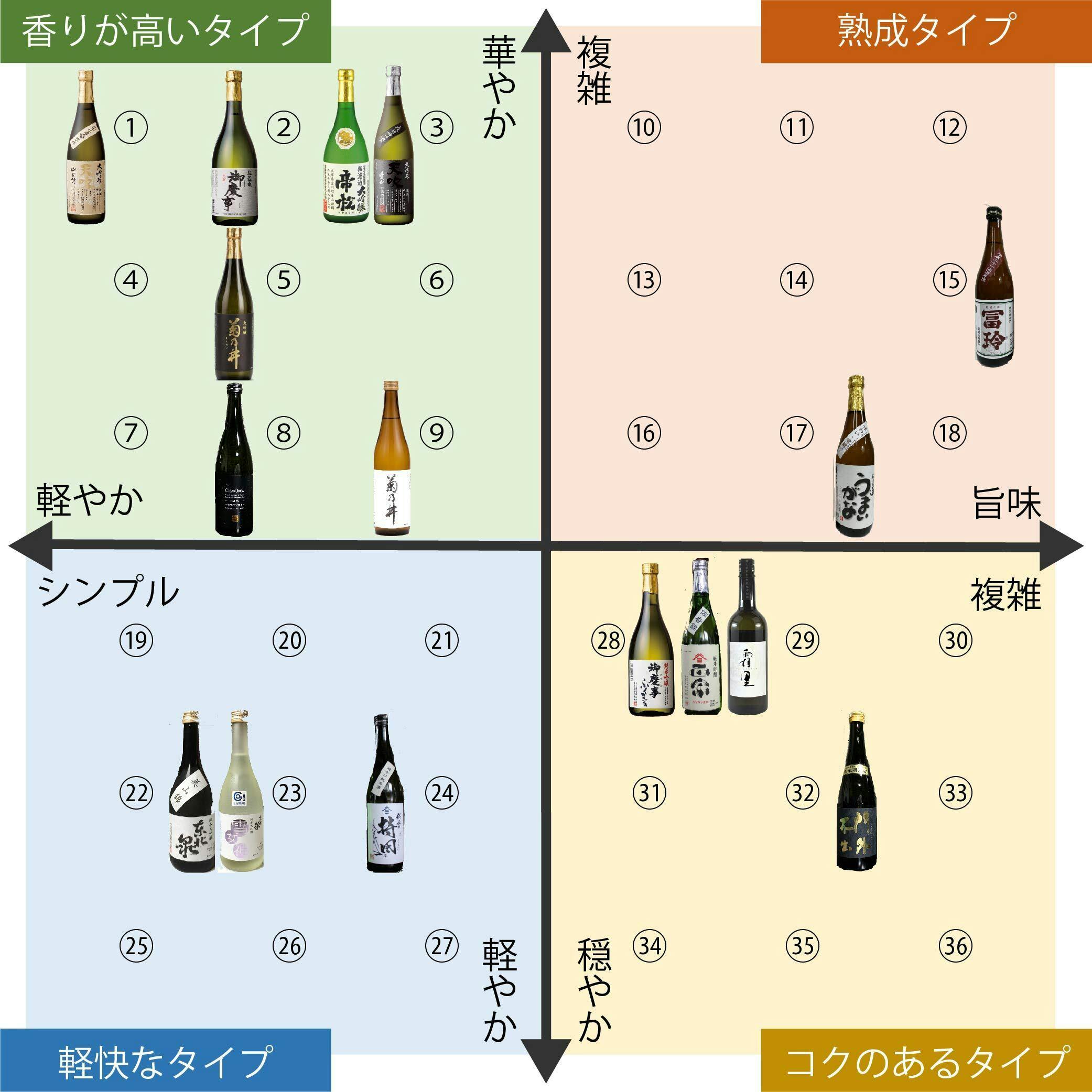 上記表の番号に対応した日本酒の名称と酒蔵。