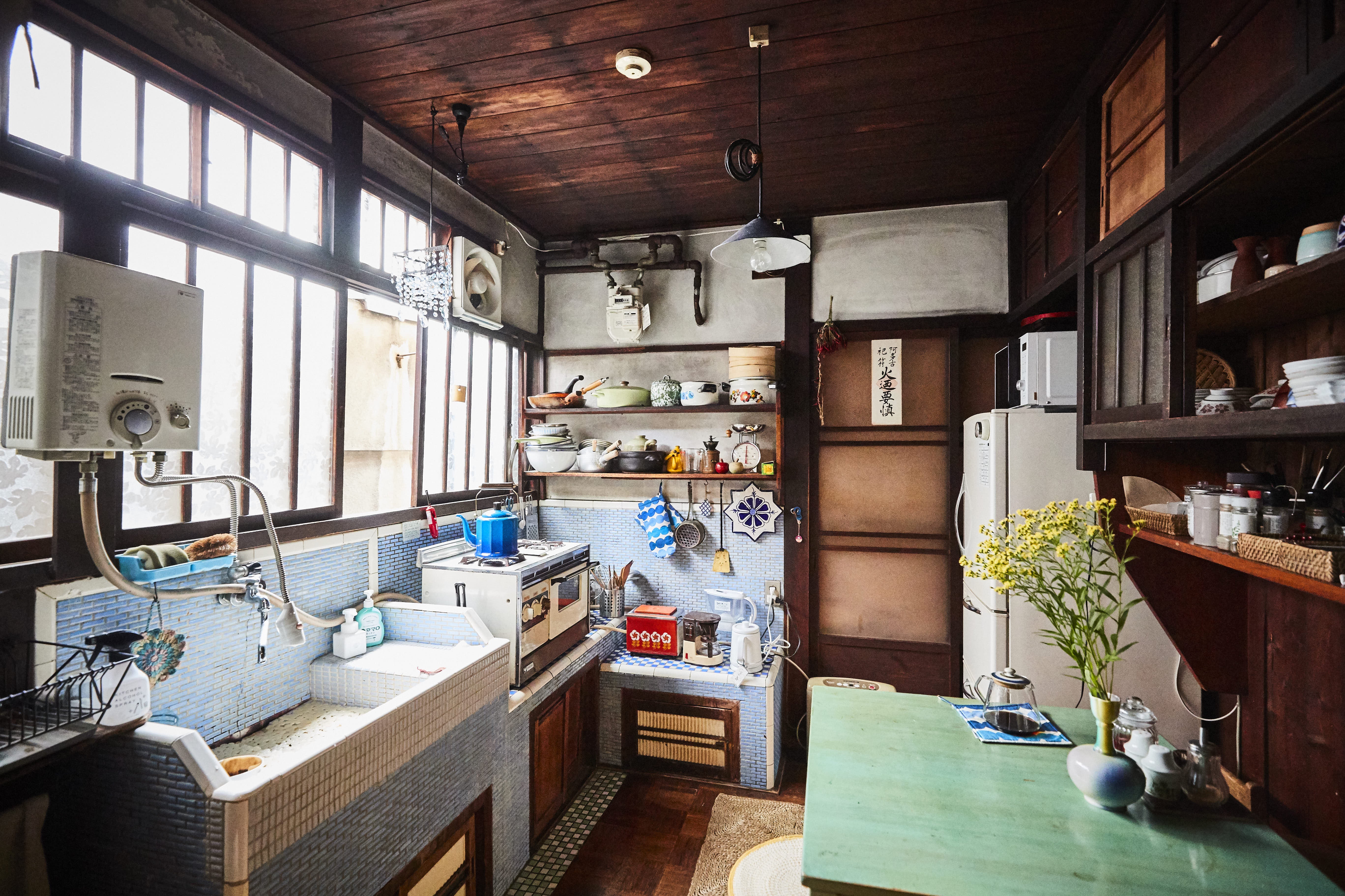 宿紹介:元薬屋を利用したゲストハウス。レトロな台所や各個室の和洋折衷のしつらえなど、どこをとってもフォトジェニック!
