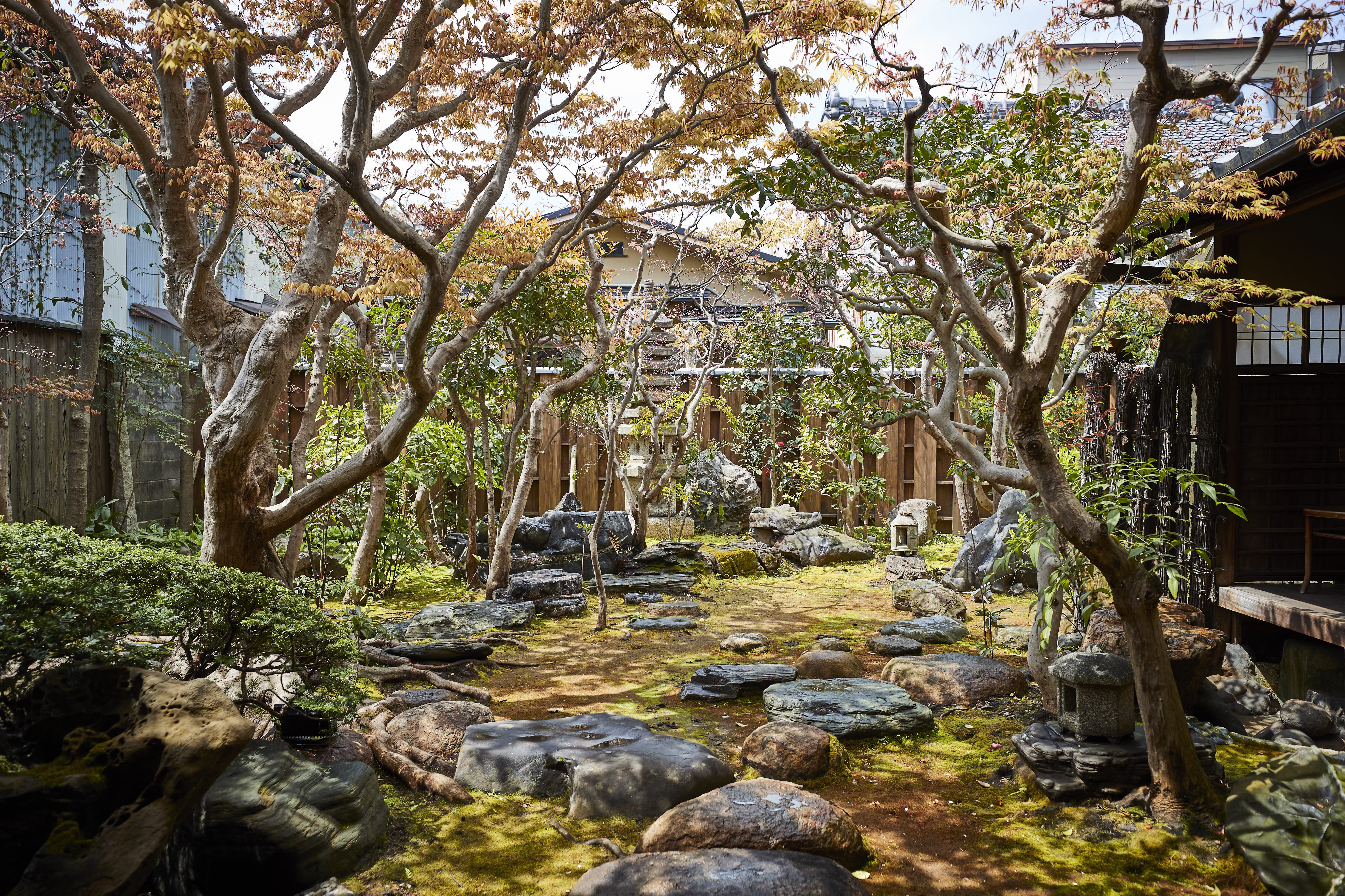 ゲストハウス「錺屋(かざりや)」の中庭と茶室