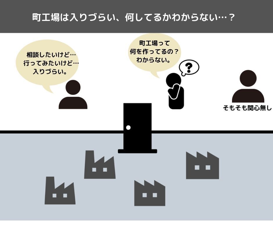 多くのメーカーに部品供給しているのが中小製造業と言われる町工場です。普段当たり前に使っているものがどうやって作られているか。これを知るととても面白い世界です。しかし、その世界はなかなかお伝えできていないのが現状です。私自身も自分が現場で体験しなければ製造業には興味を持たなかったと思います。これまで多くの町工場へ訪問する中で知ったことは業界と世間とのギャップです。