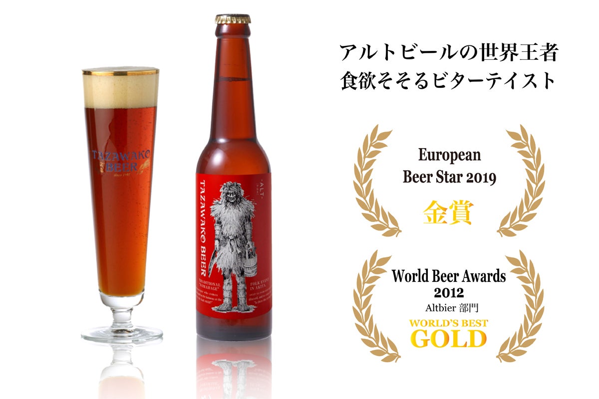独特のさわやかなホップの苦みが魅力の田沢湖ビールのアルト(ALT)。大手ビールではまず体験できない麦芽の風味がきいた滑らかな口当たりで、地元秋田のビール通に人気です。アルトとは、ドイツ語で“古い”を意味する言葉。ケルンのケルシュと同じく、古来からの製法そのままの上面醗酵ビールとして有名です。 色は赤褐色。光にかざすとより赤く見えます。食欲を誘うのに十分な辛さもあり、だからと言ってそれほど強くなく、お腹もそんなにいっぱいにならないビールです。食事中に楽しむには最高のビール!