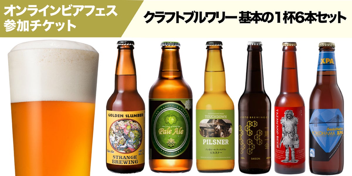 クラフトブルワリー6社それぞれと基本の1杯と、オンラインビアフェスへの参加権をセットで。各社自慢の定番ビールたちは、飽きがこず何度も飲みたくなるおいしさです。